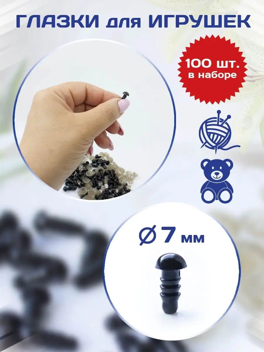 Пластиковые черные глазки с фиксатором 7 мм, 100 шт. интересное: