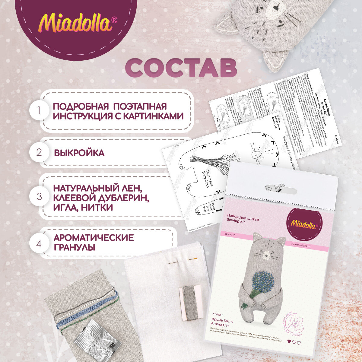 Набор для изготовления игрушки "Miadolla" AT-0241 Арома Котик . интересное: