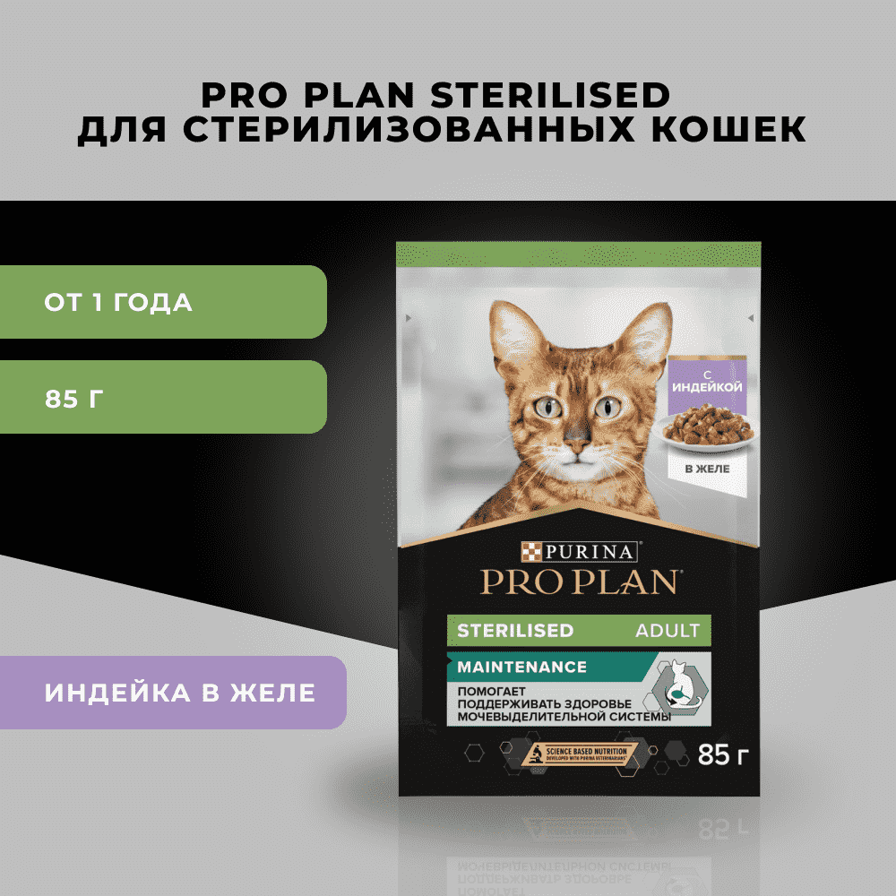 Влажный корм Pro Plan Sterilised для стерилизованных кошек, с океанической рыбой в соусе,упаковка 85 г х 26 шт.