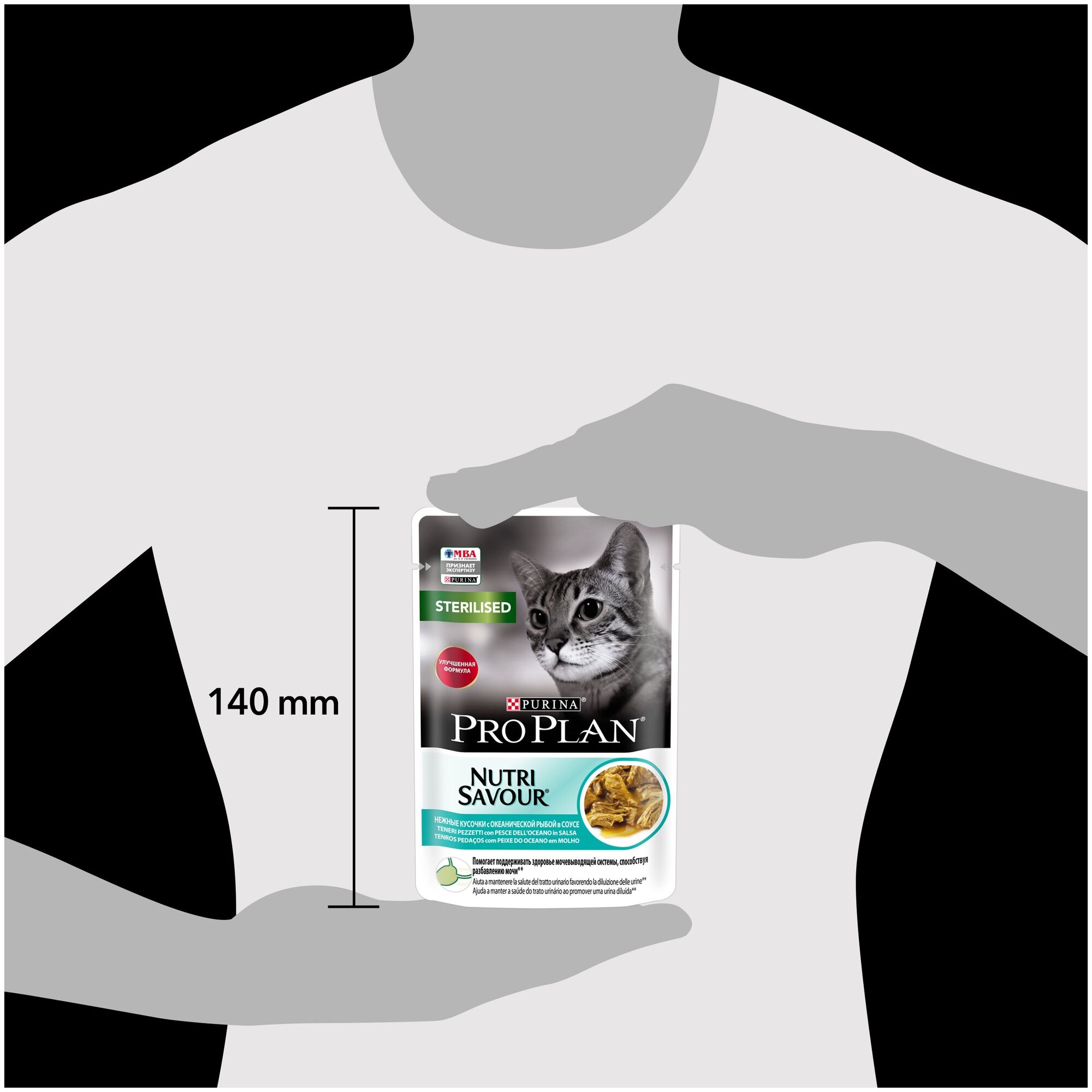 Влажный корм Pro Plan STERILISED для стерилизованных кошек и кастрированных котов, с океанической рыбой в соусе, паучи, 85г.*12шт.