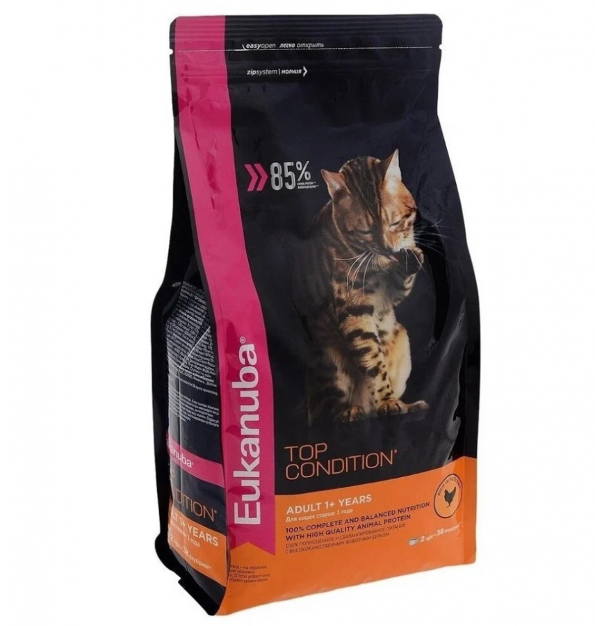Eukanuba TOP CONDITION для взрослых кошек, домашняя птица 2кг.