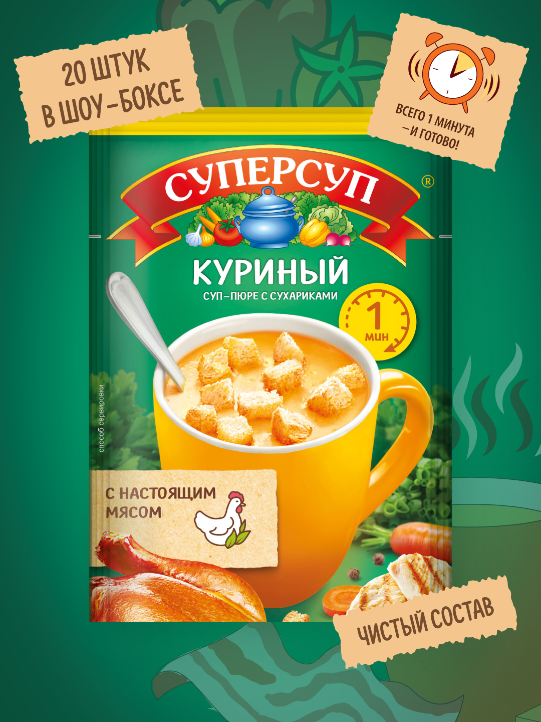 Суперсуп-пюре Суперсытный момент. "Куриный с сухариками" 17 г / 20 пакетиков в упаковке. Русский Продукт интересное: