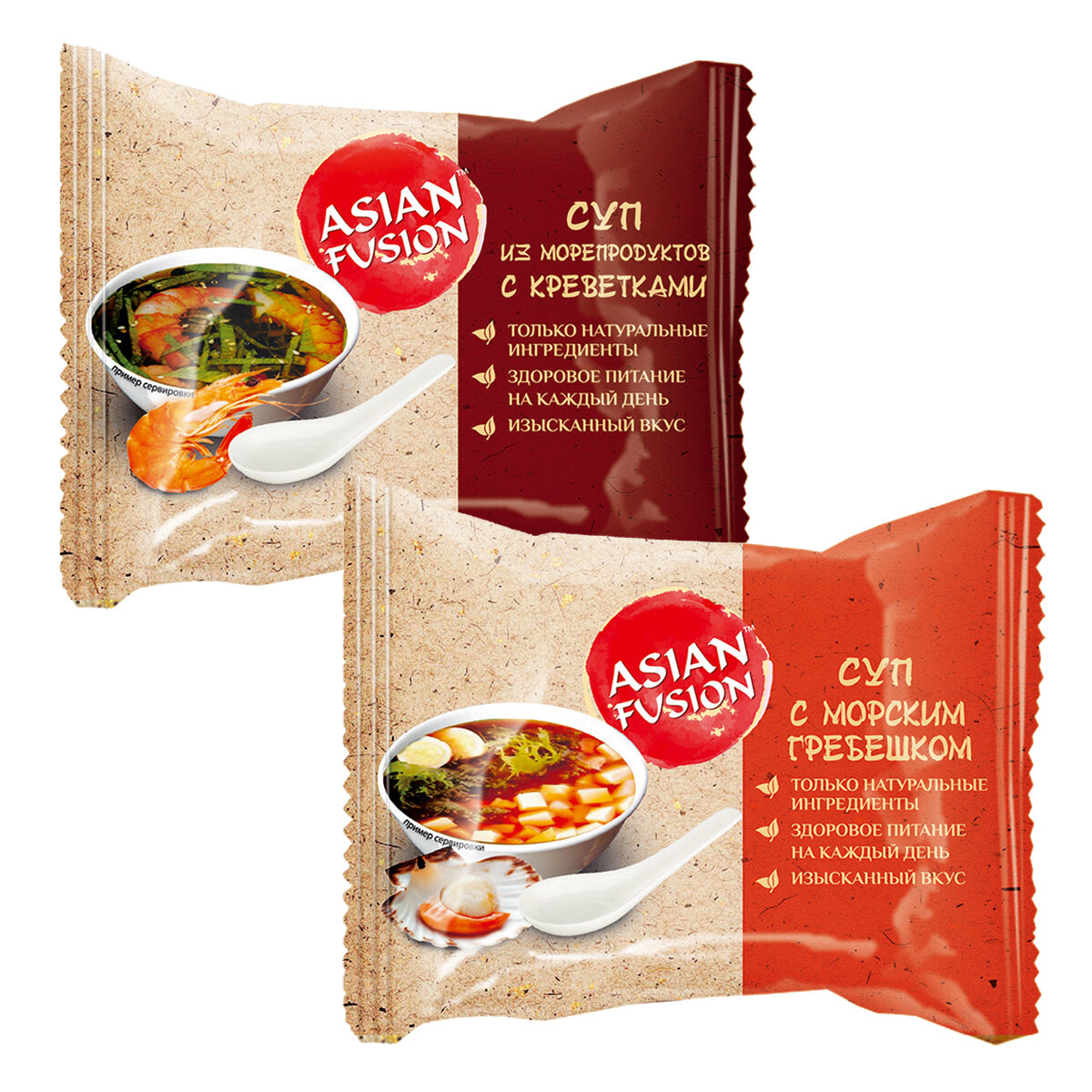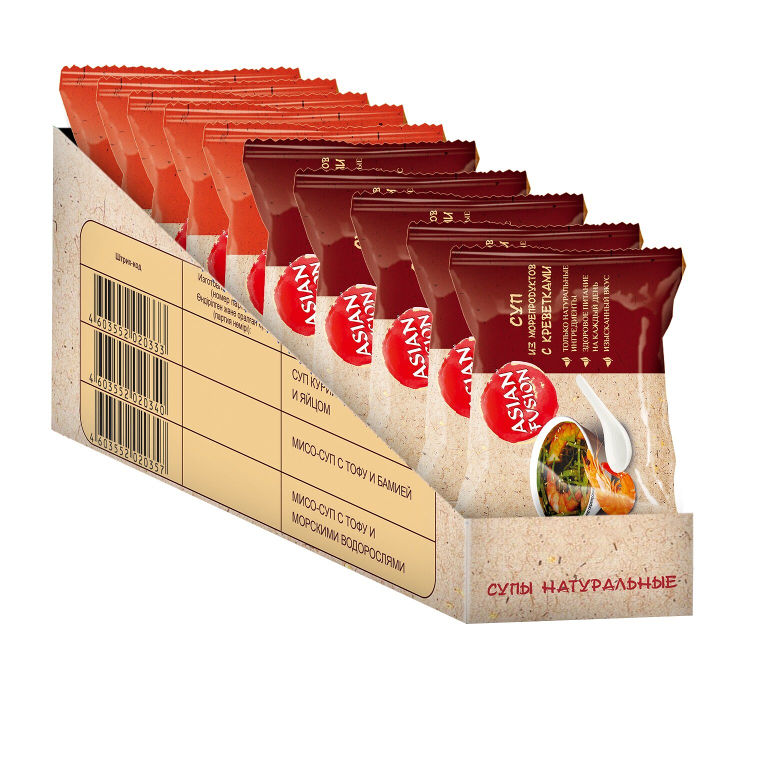 Суп азиатский морской 2 вкуса Asian Fusion, 12 гр. - шоубокс 10 шт. интересное: