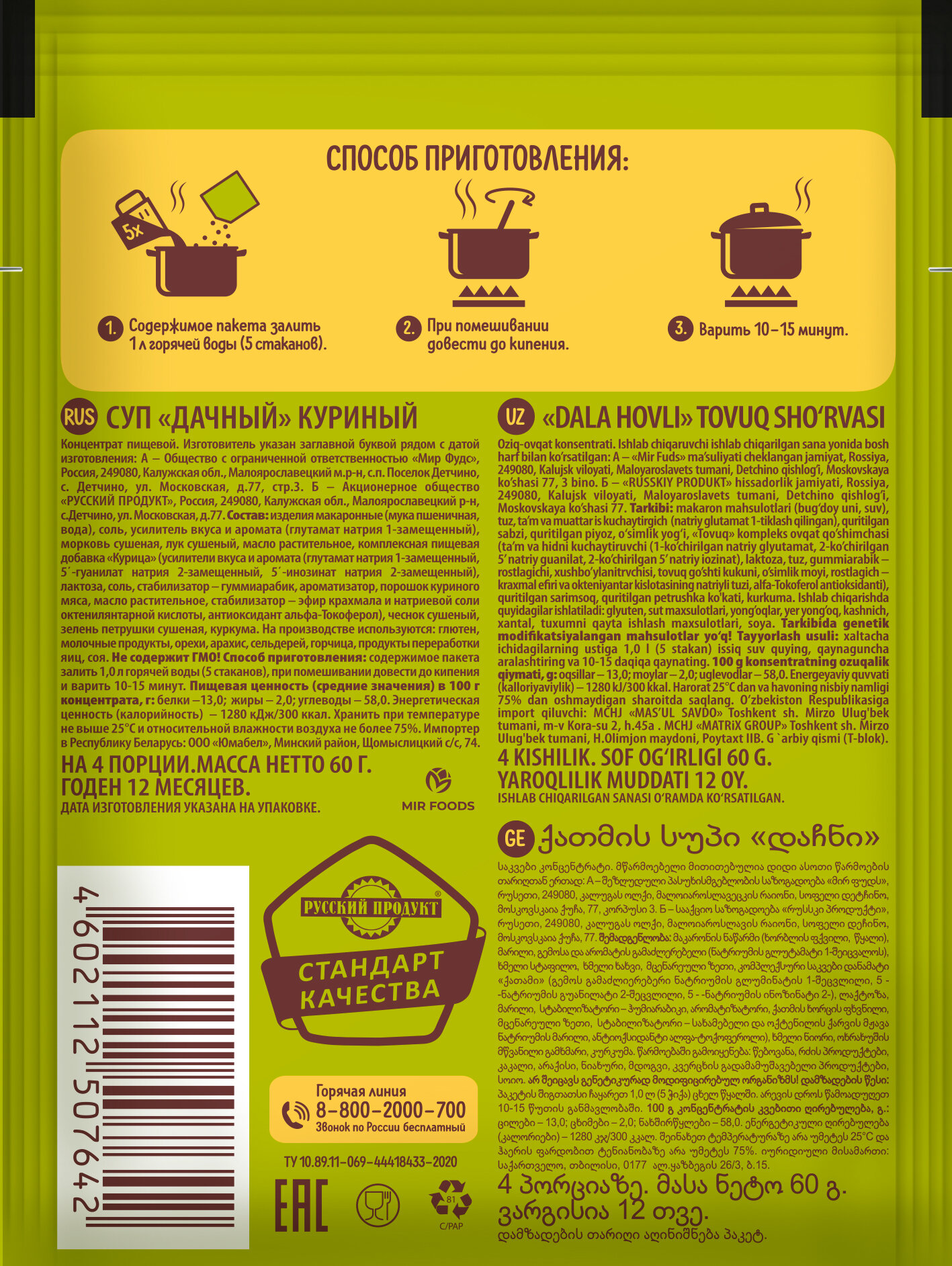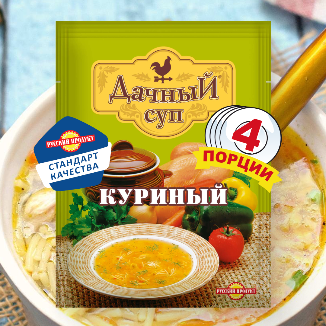 Упаковка 25 штук Суп Русский продукт Дачный Куриный пак 60г интересное: