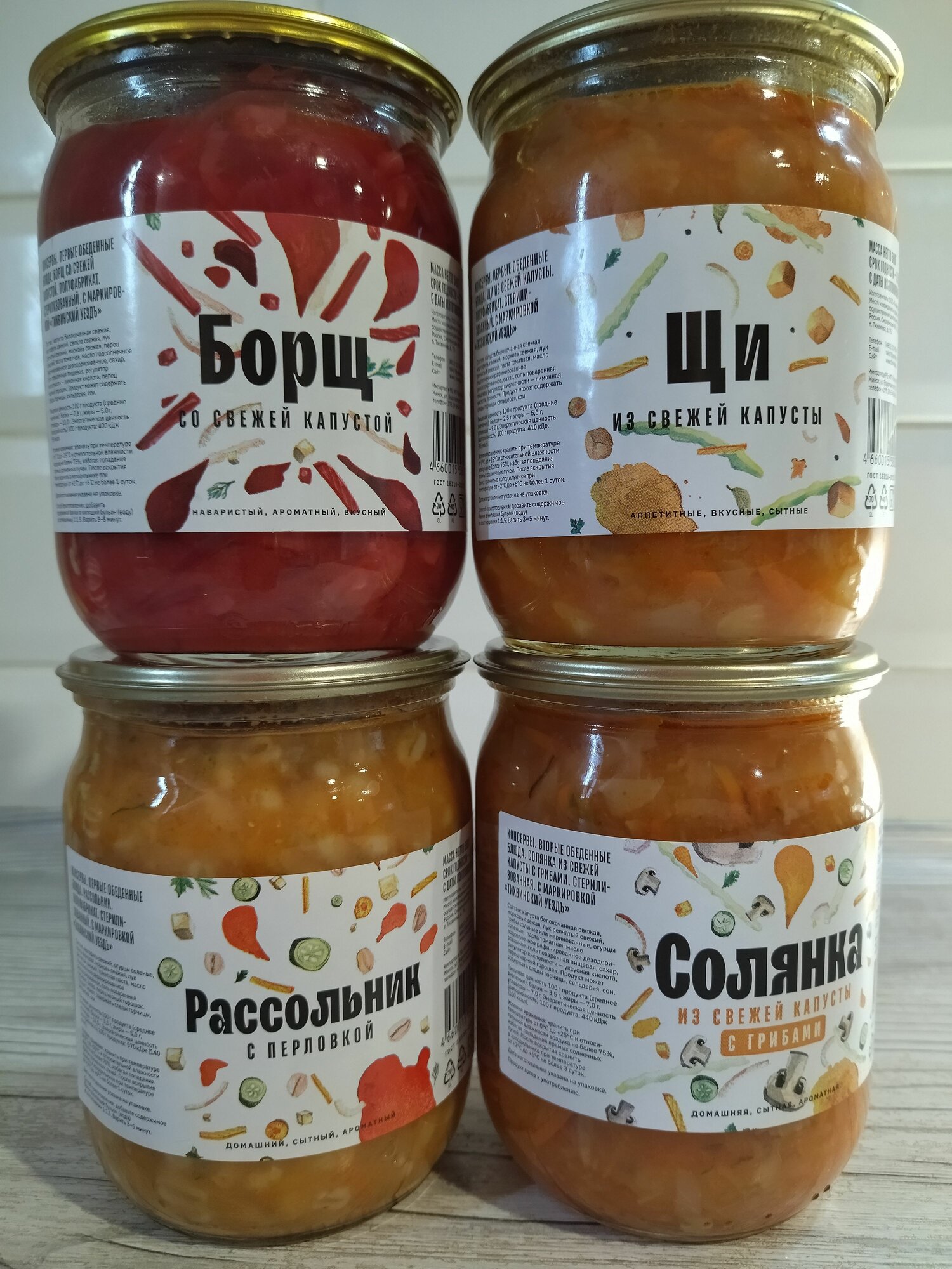 Суп Солянка, Борщ, Щи, Рассольник 4 банки по 500 гр Тихвинский уездъ интересное: