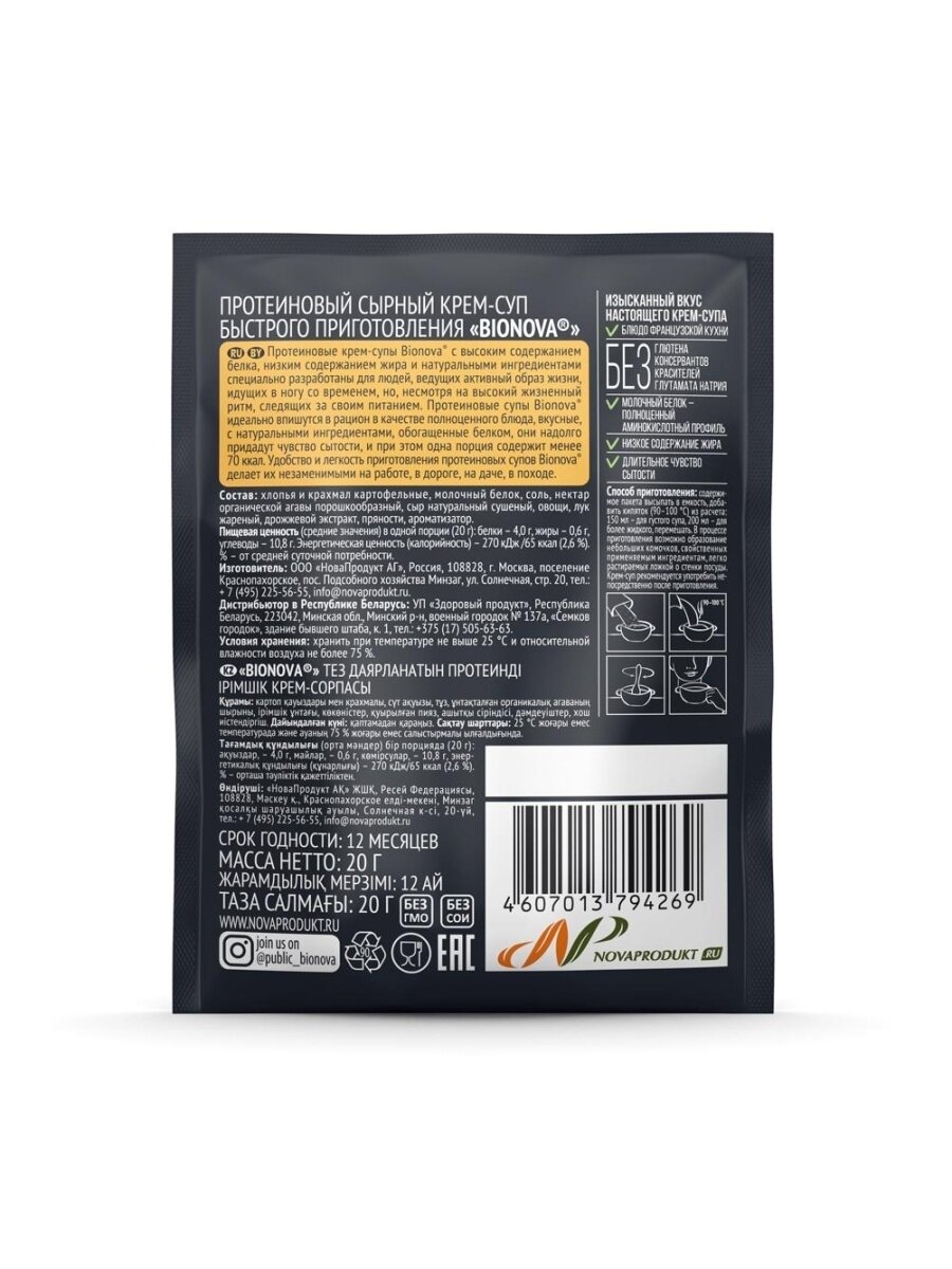 Купить Супы Bionova Сырный крем-суп быстрого приготовления Bionova® (milk protein) - 14 шт.
