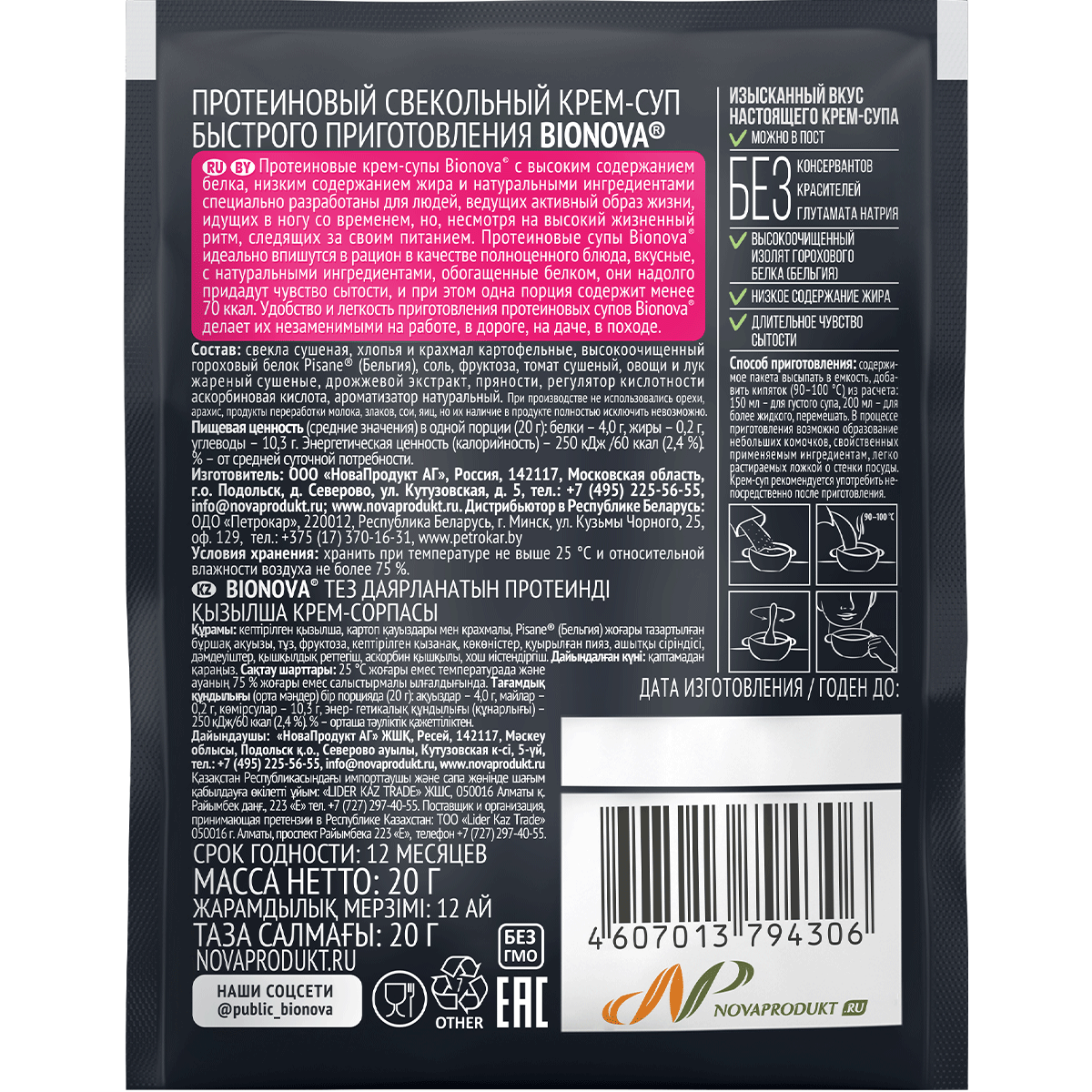 СохранитьСупы Bionova Свекольный крем-суп Bionova® (vegan protein) - 14 шт. интересное: