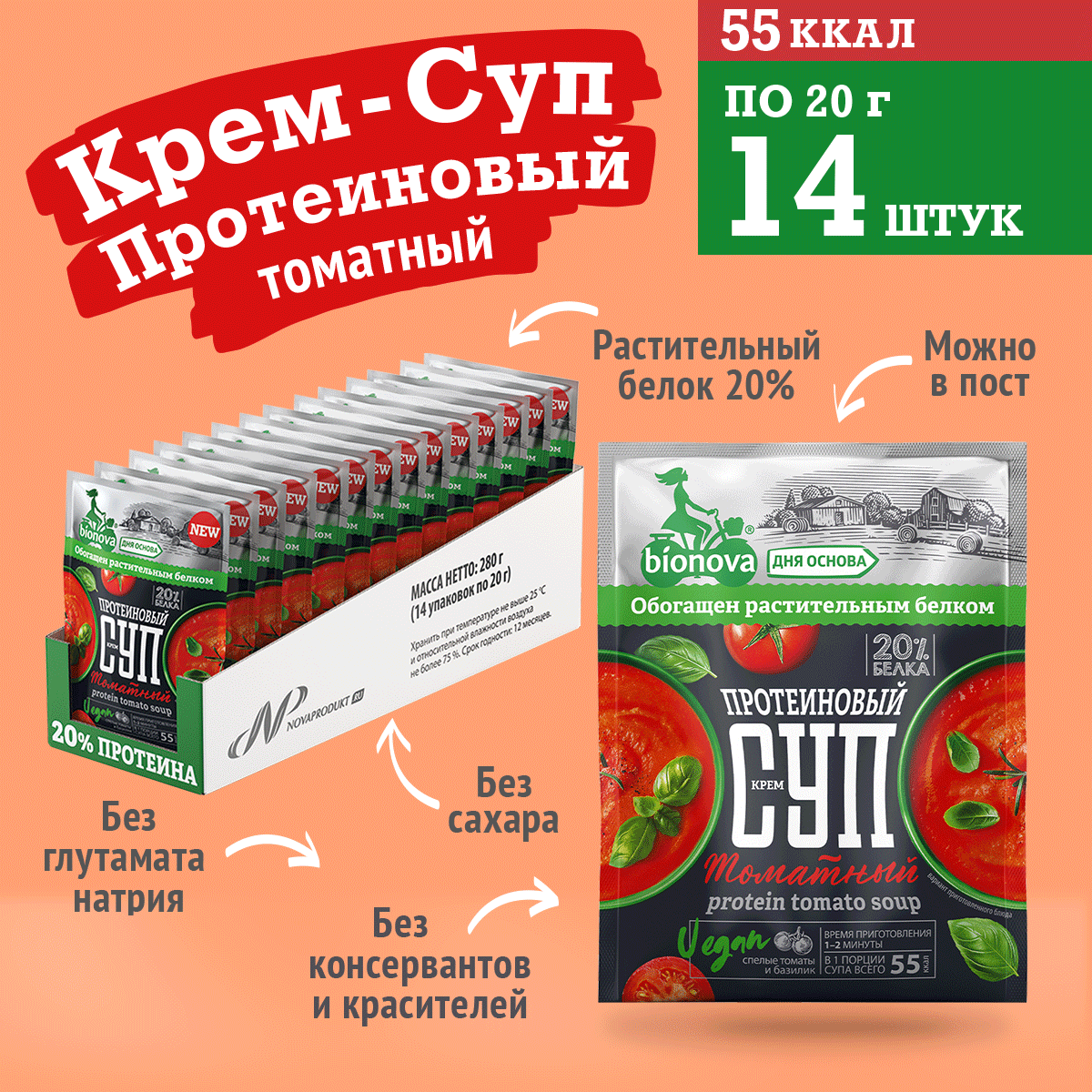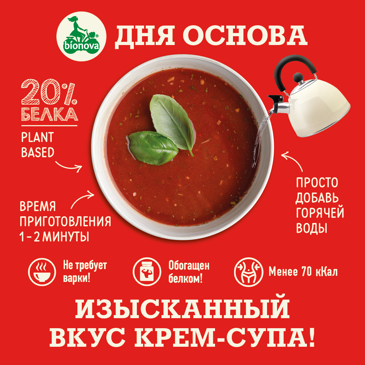 СохранитьСупы Bionova Томатный крем-суп быстрого приготовления Bionova® (vegan protein) - 14 шт. интересное:
