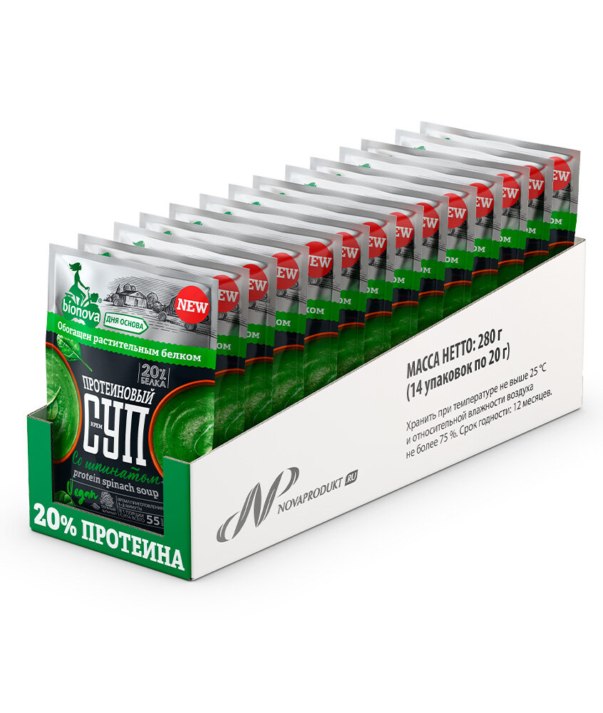 Купить Супы Bionova Крем-суп быстрого приготовления со шпинатом Bionova® (vegan protein) - 14 шт.