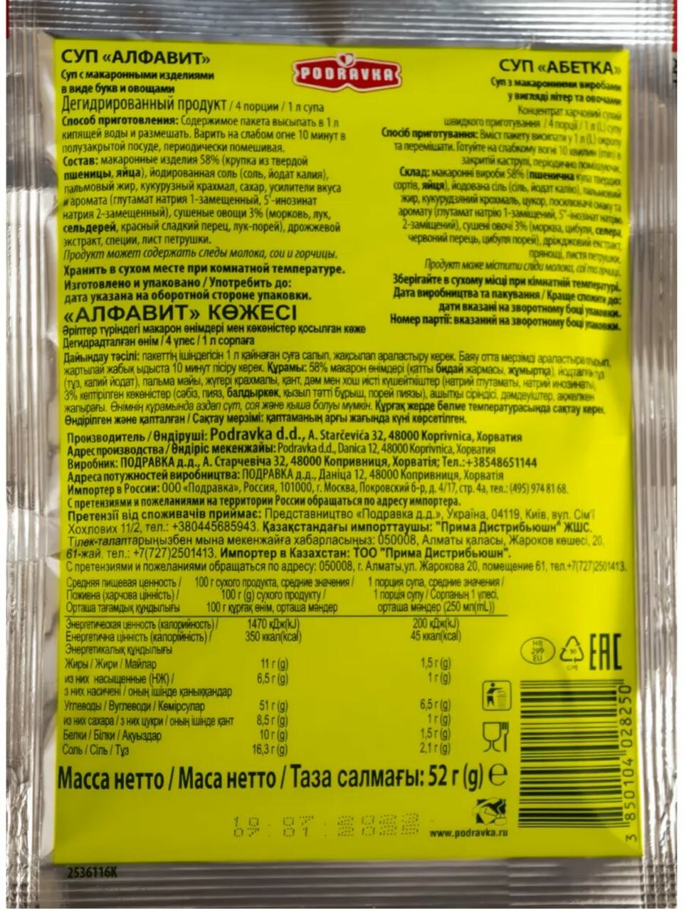 Суп быстрого приготовления Алфавит 52 гр 10 шт интересное: