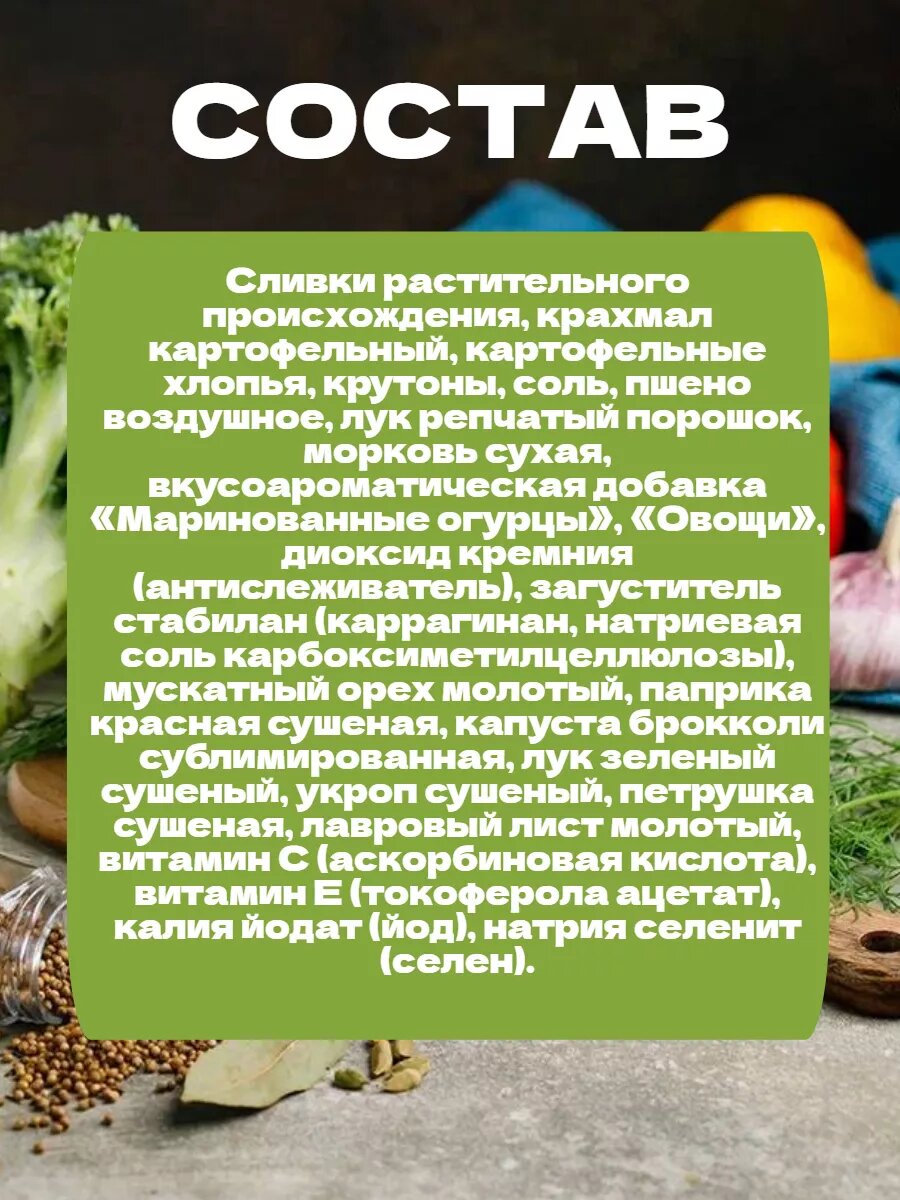 | Не содержит | ГМО / ароматизаторы / глютен / искусственные красители / консерванты |