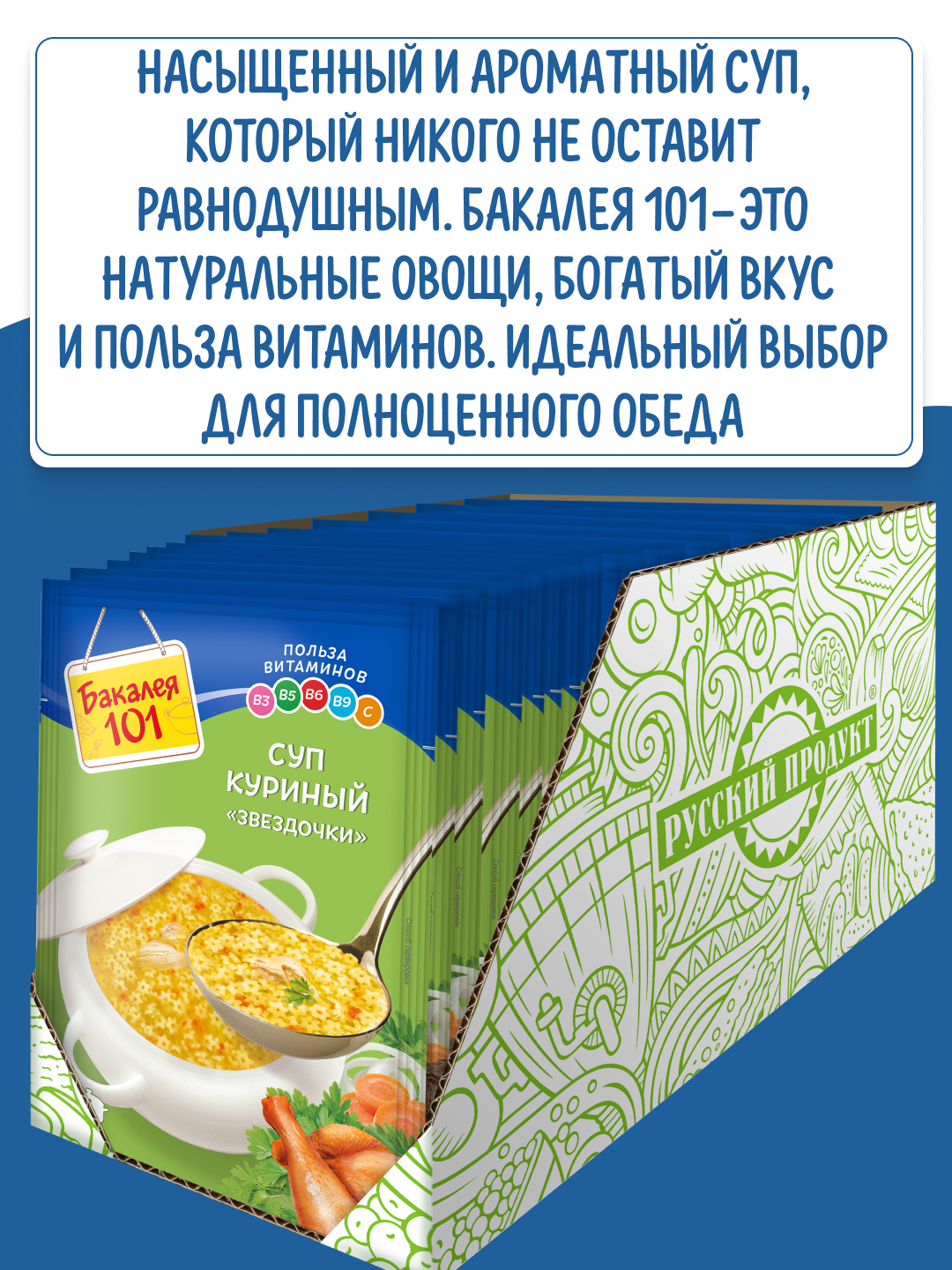 Купить Суп Бакалея 101 Куриный со звездочками 60г/25 уп в ш/б (ТУ-2020)