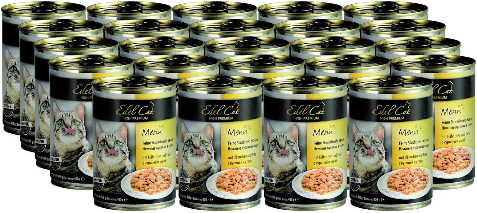 Влажный корм для кошек Edel Cat курица, утка 24 шт. х 400 г (кусочки в соусе)
