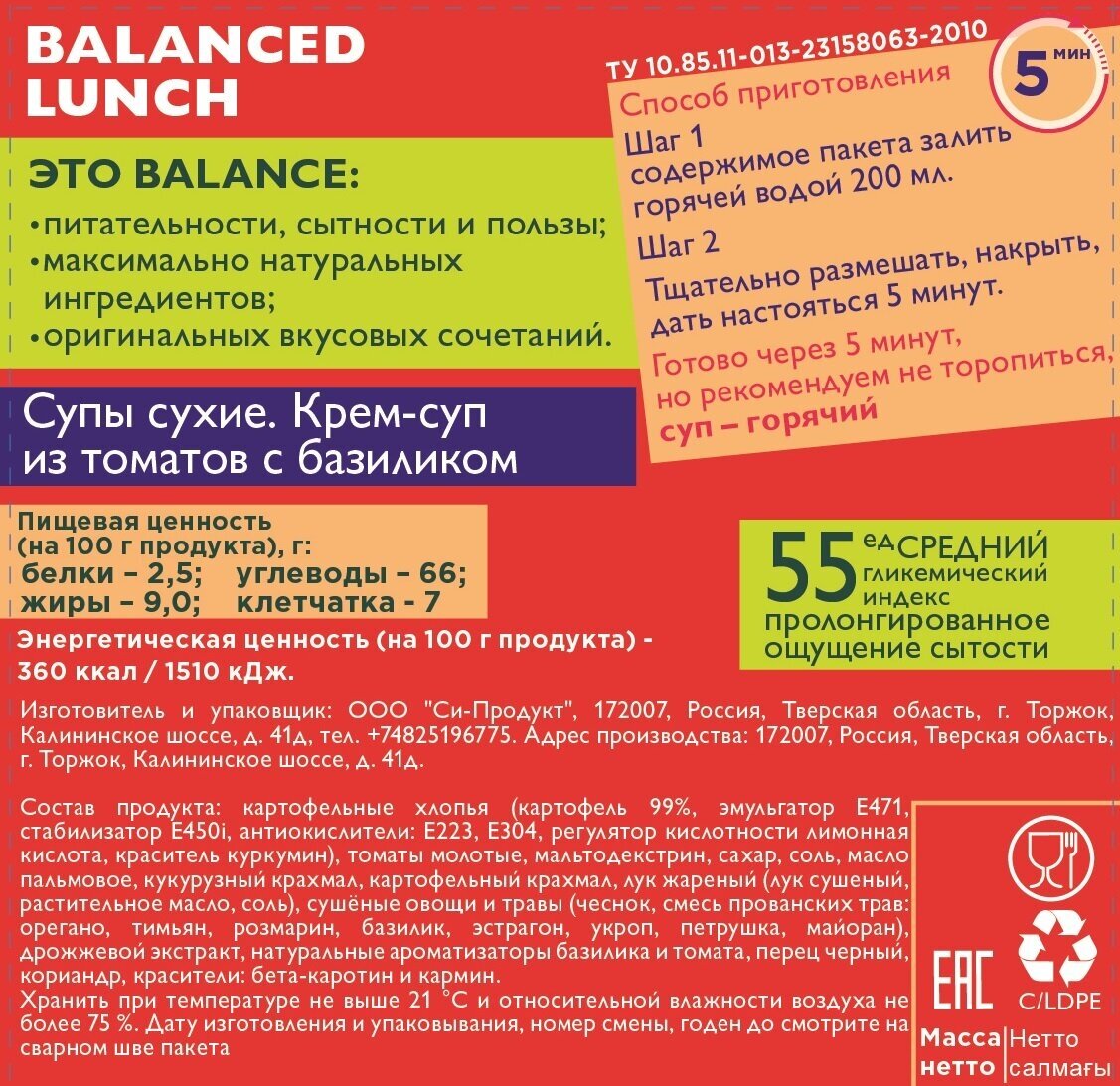 | Стандарты производства | ТУ 10.85.11-013-23158063-2010 |