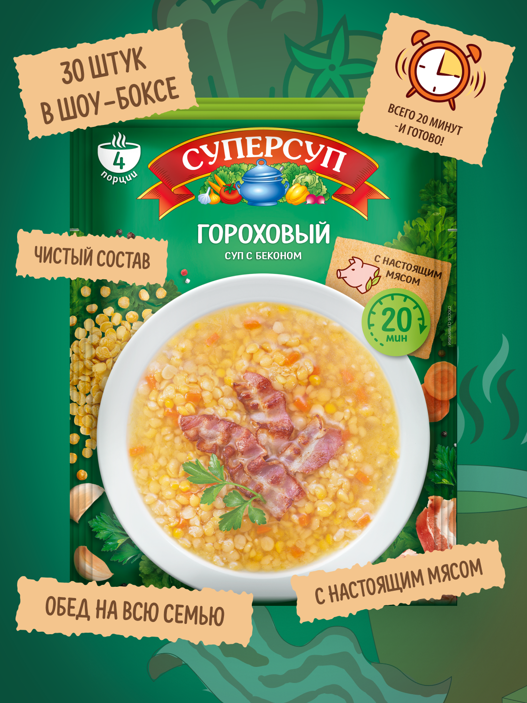 Суп Суперсуп Гороховый с беконом 70 гр / 30 шт. в упаковке интересное: