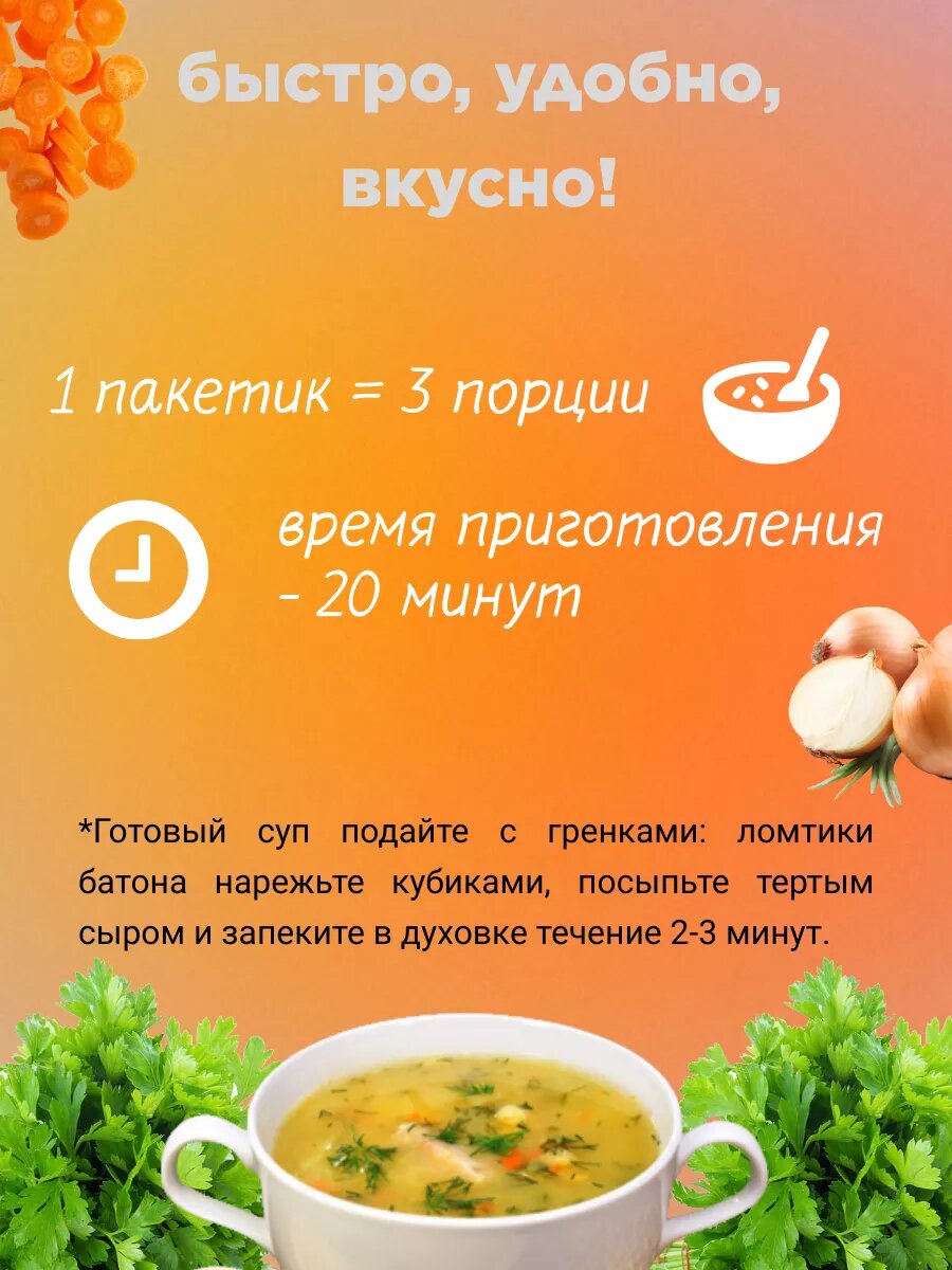 | Особенности | натуральный продукт / с вермишелью / суп-пюре |