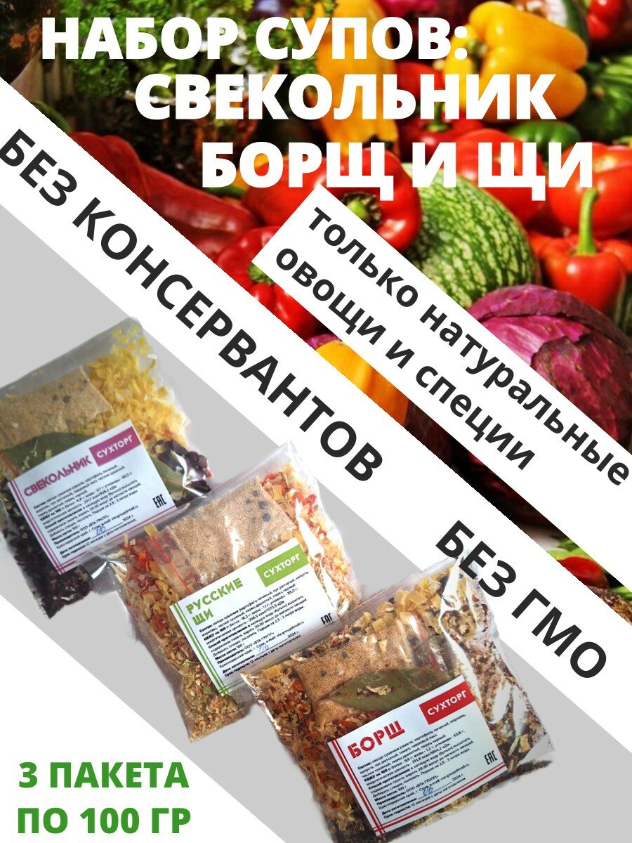 Купить Набор супов быстрого приготовления: борщ, свекольник, русские щи. Суповая смесь для быстрого приготовления, еда в поход.