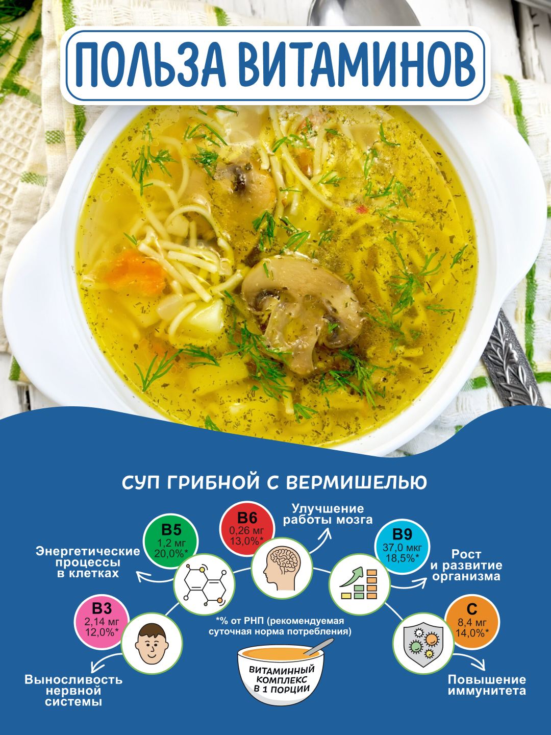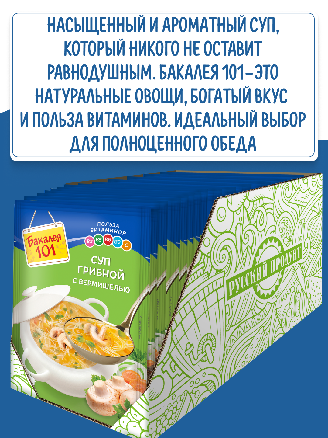 Суп быстрого приготовления Дачный суп "Мясной с вермишелью" 60 гр / 10 шт в коробке, Русский Продукт