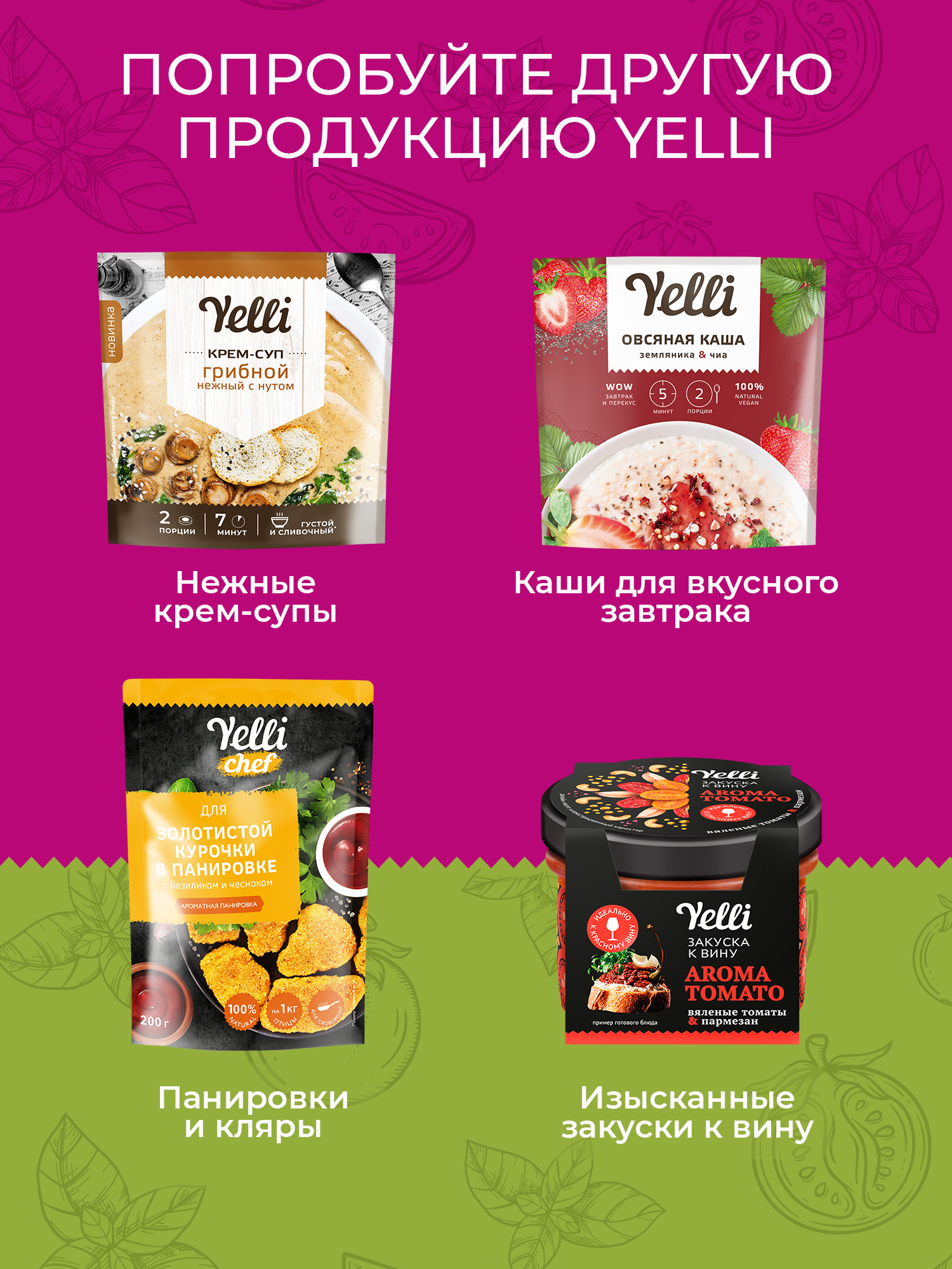 Yelli, Крем-суп пряный "Томатный" с базиликом, 70 грамм
