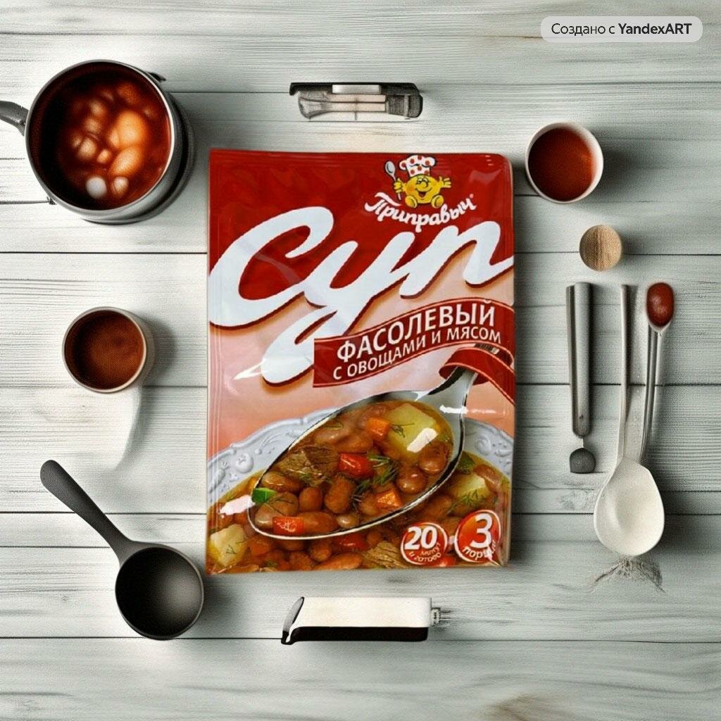 Суп быстрого приготовления "Фасолевый" с мясом и овощами "Приправыч" 60 гр, 15 шт. 45 порций