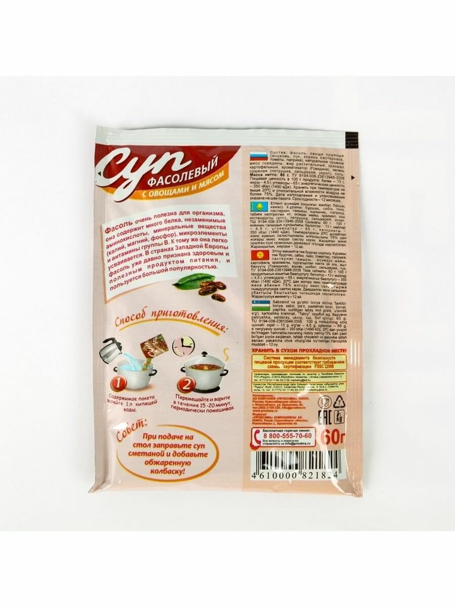 Суп быстрого приготовления "Фасолевый" с мясом и овощами "Приправыч" 60 гр, 1 шт. 3 порции