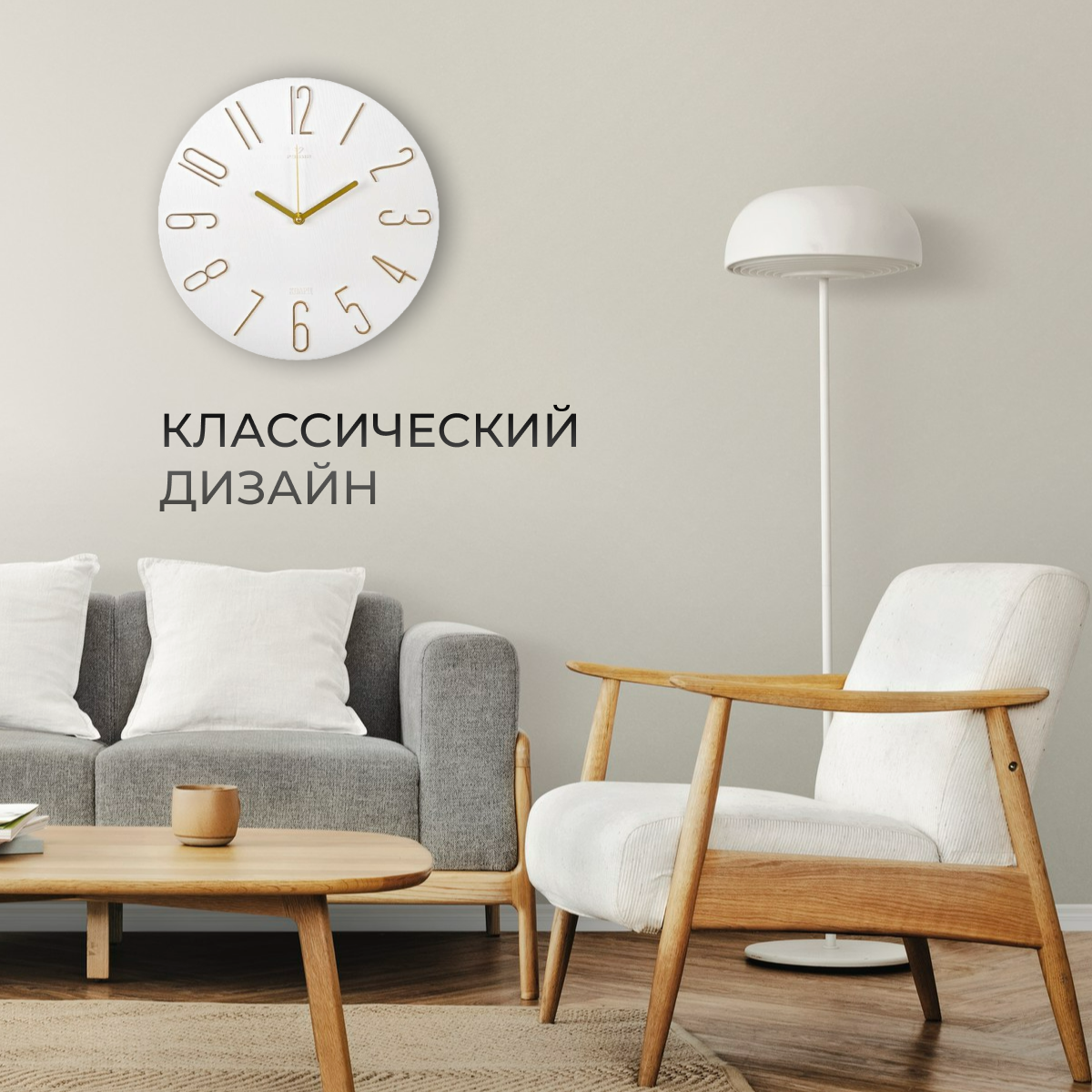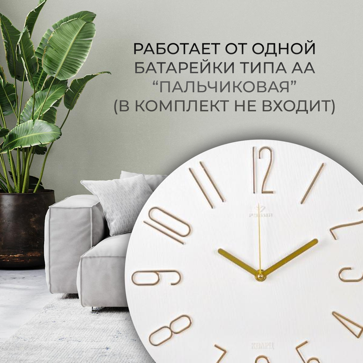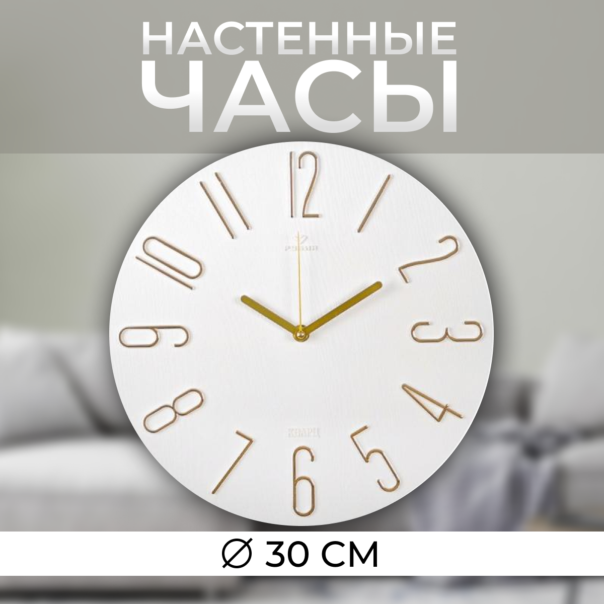 Рубин Часы настенные, интерьерные, бесшумные, d-30 см, белые интересное: