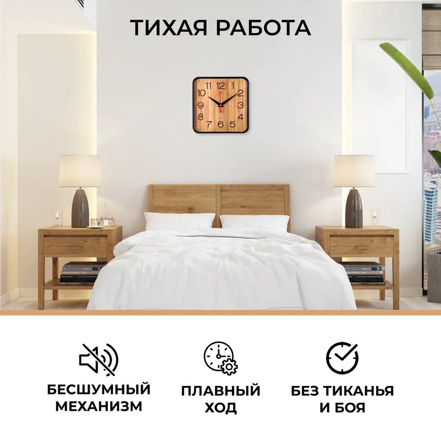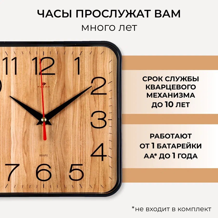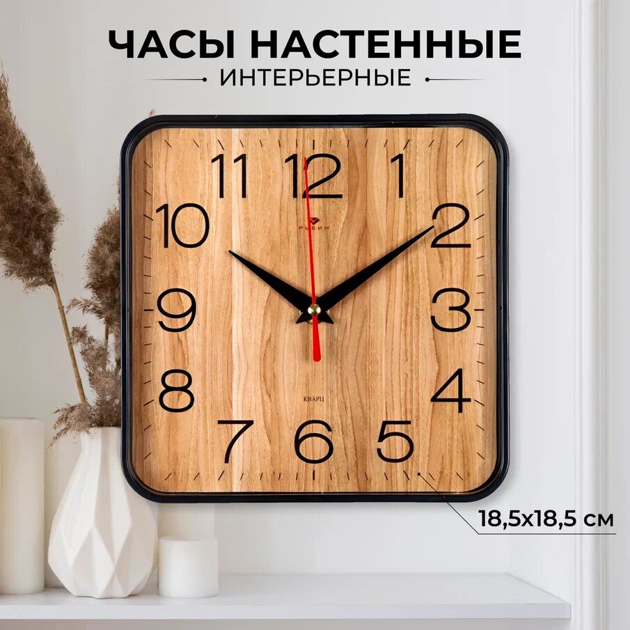 Часы настенные Рубин квадратные 19х19 см, корпус черный "Дерево" (1918-112) интересное: