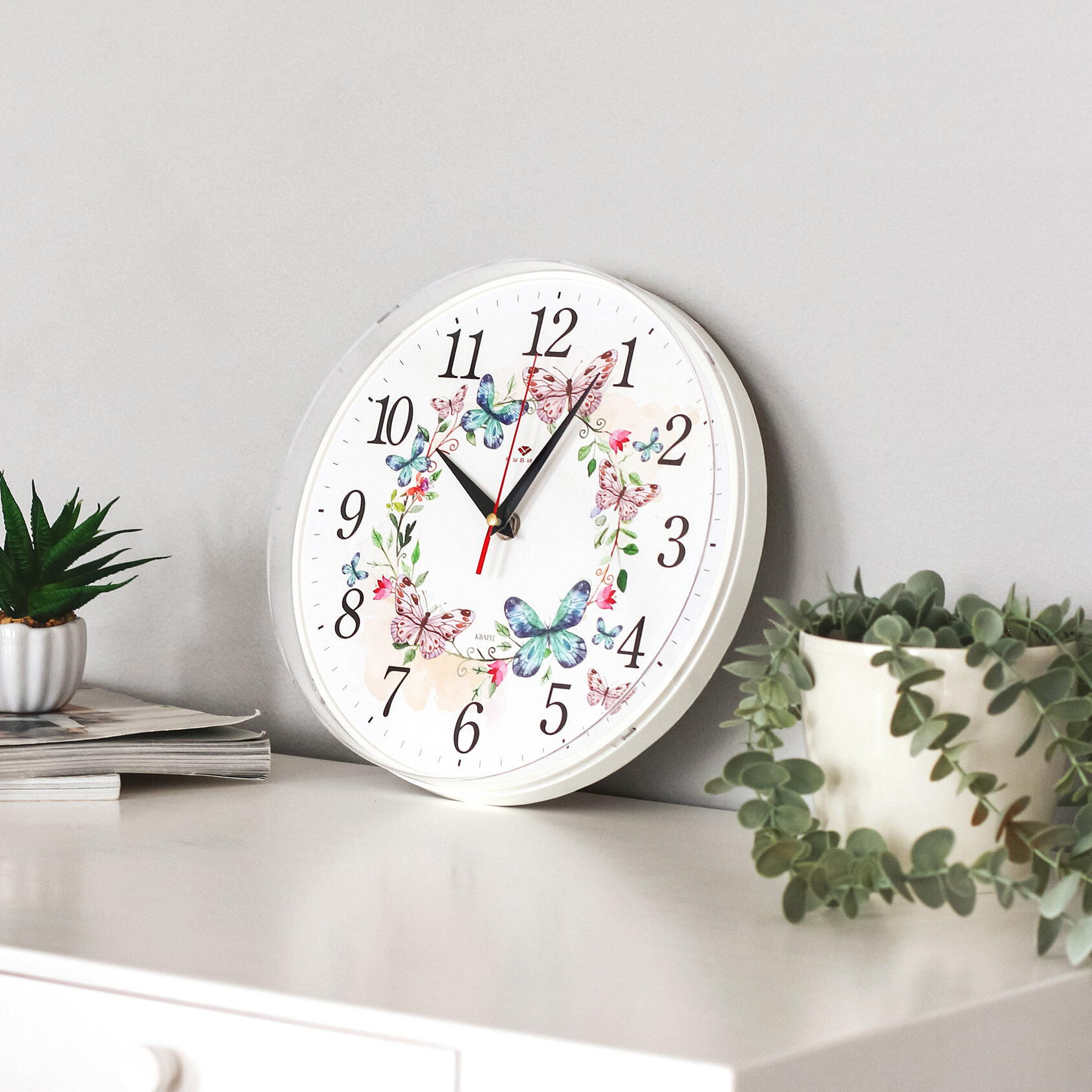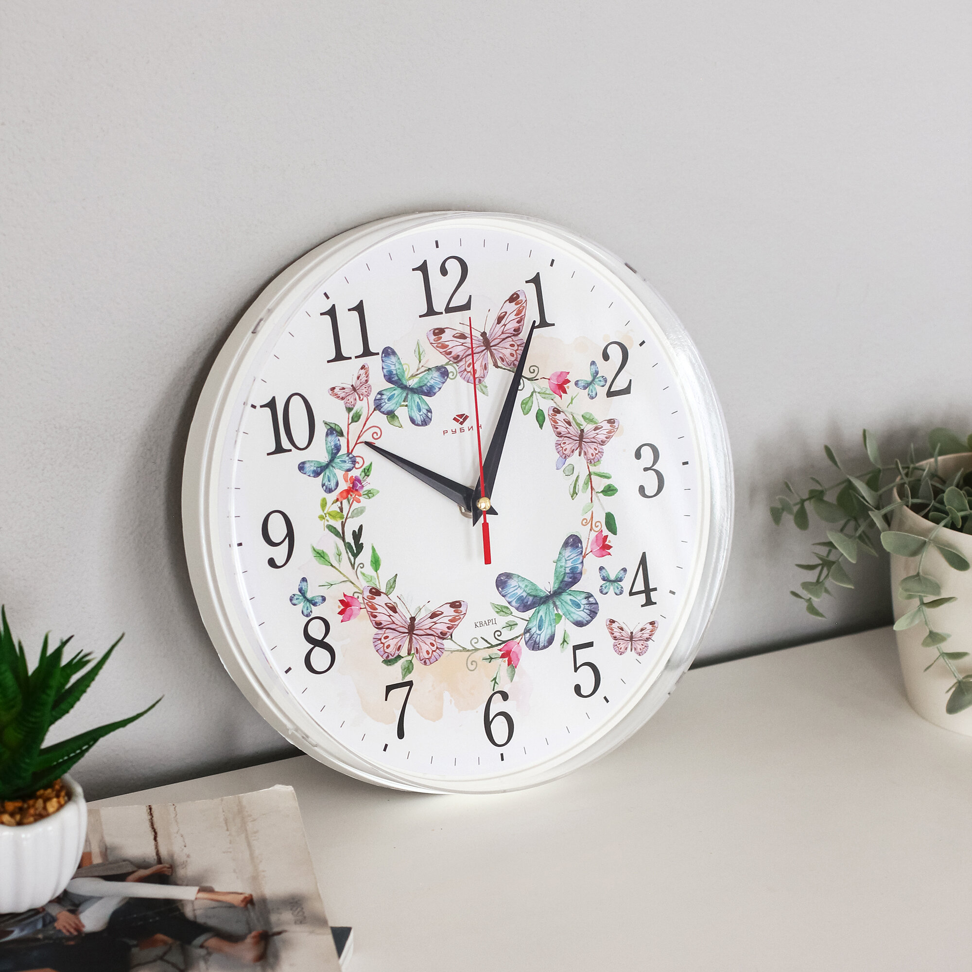 Купить Настенные часы "Венок из бабочек", диаметр 25см, бежевое основание, плавный ход