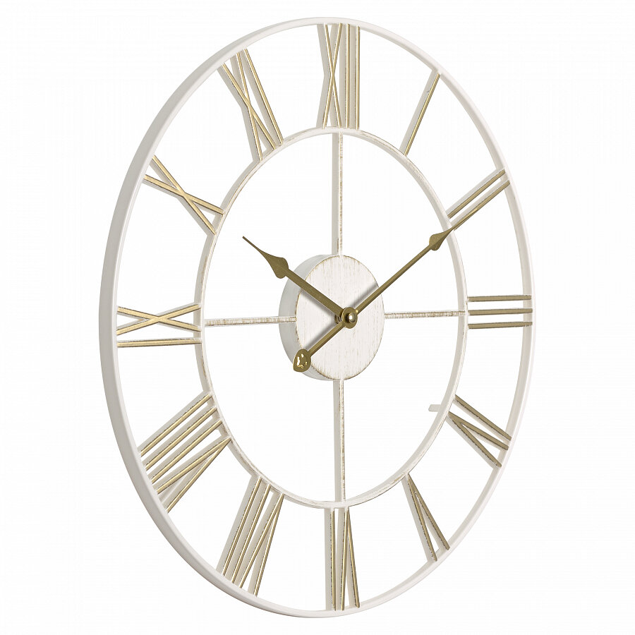 Часы настенные Loft, диаметр 46см, белый с золотым корпусом, открытая стрелка