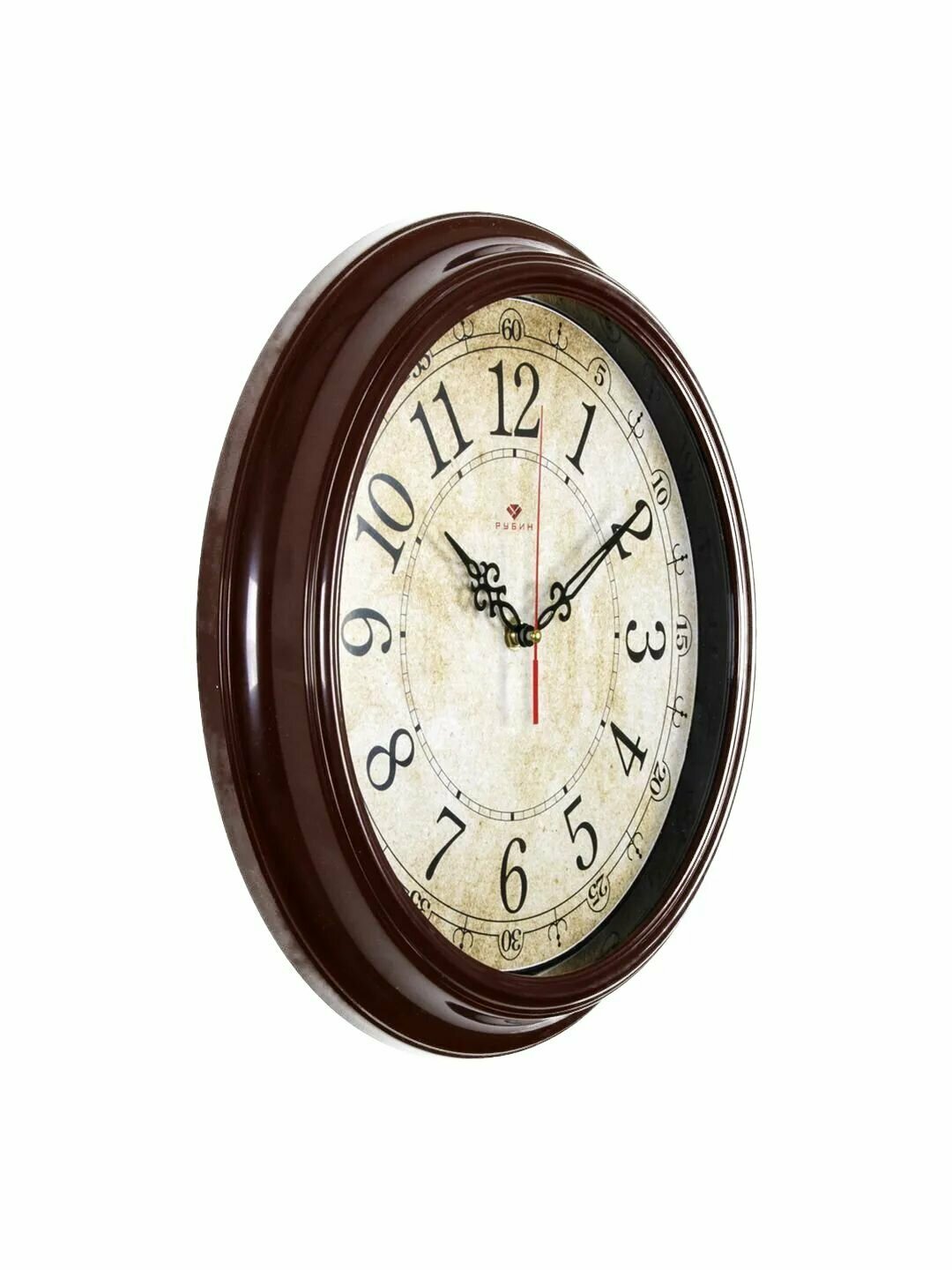 Интерьерные настенные круглые часы Рубин Ретро классика 3527-122 с плавным ходом / арабский циферблат / 1хАА / коричневый, d35х4.5см интересное: