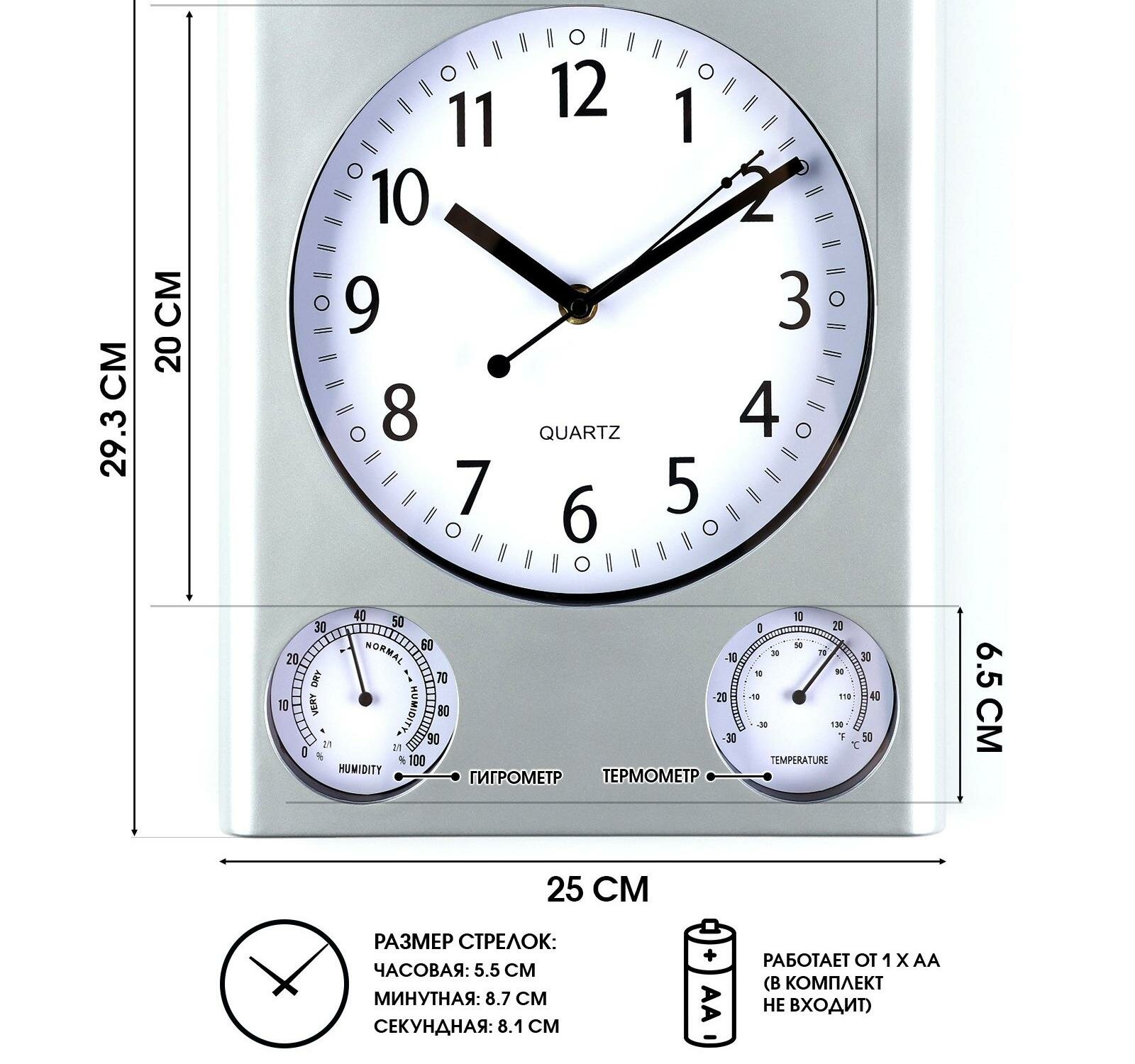 Часы настенные "Верность", 29.5 х 25 см, бесшумные, d-20 см, термометр, гигрометр интересное: