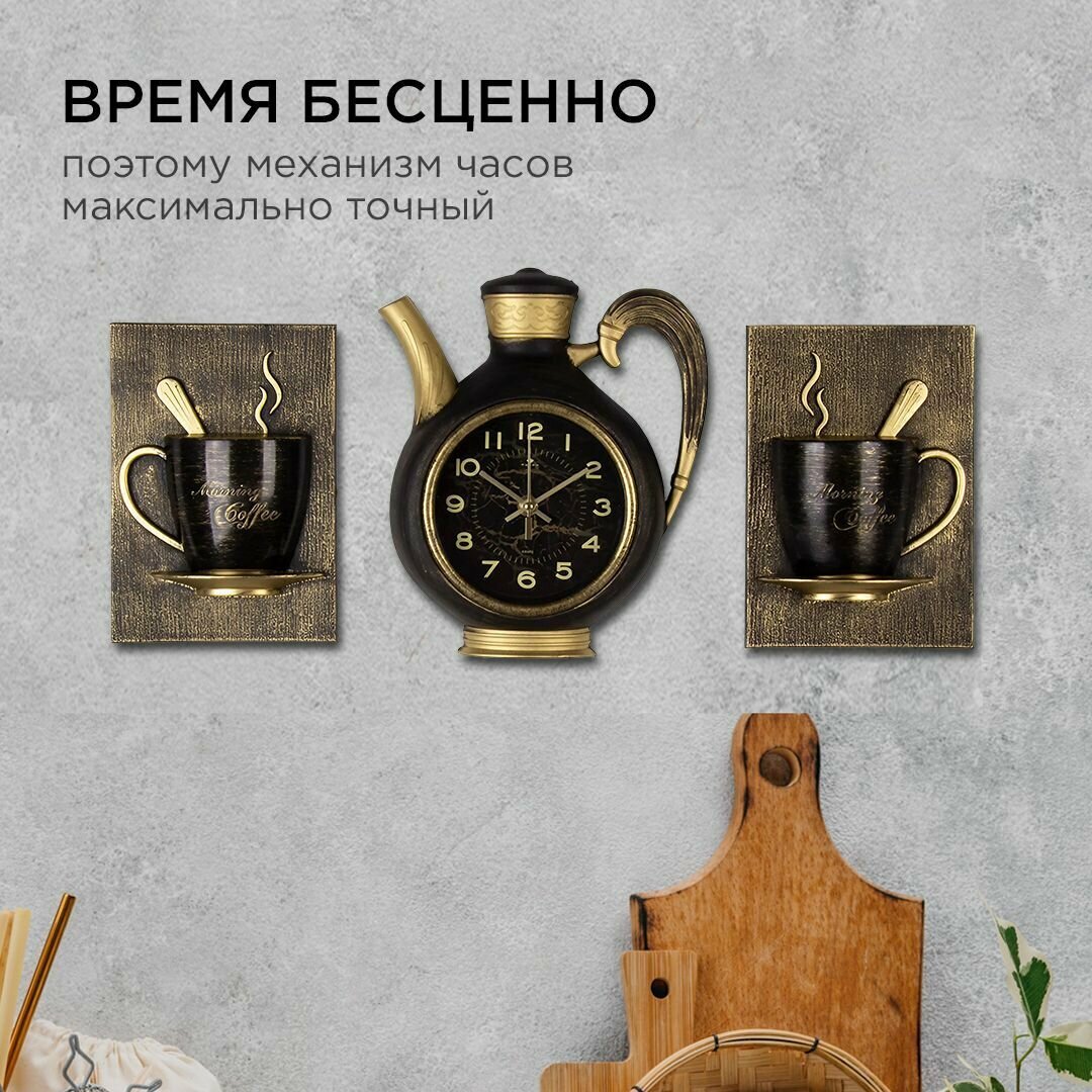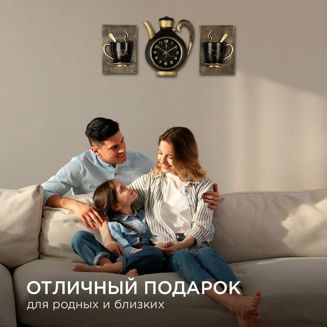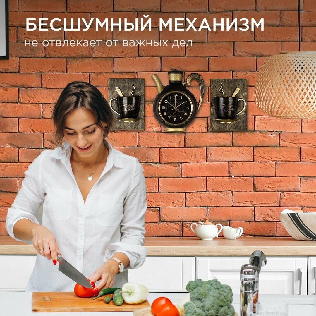 СохранитьЧасы настенные интерьерные для кухни "Сангино", бесшумные, 26.5х24 см, чёрные с золотом, АА интересное: