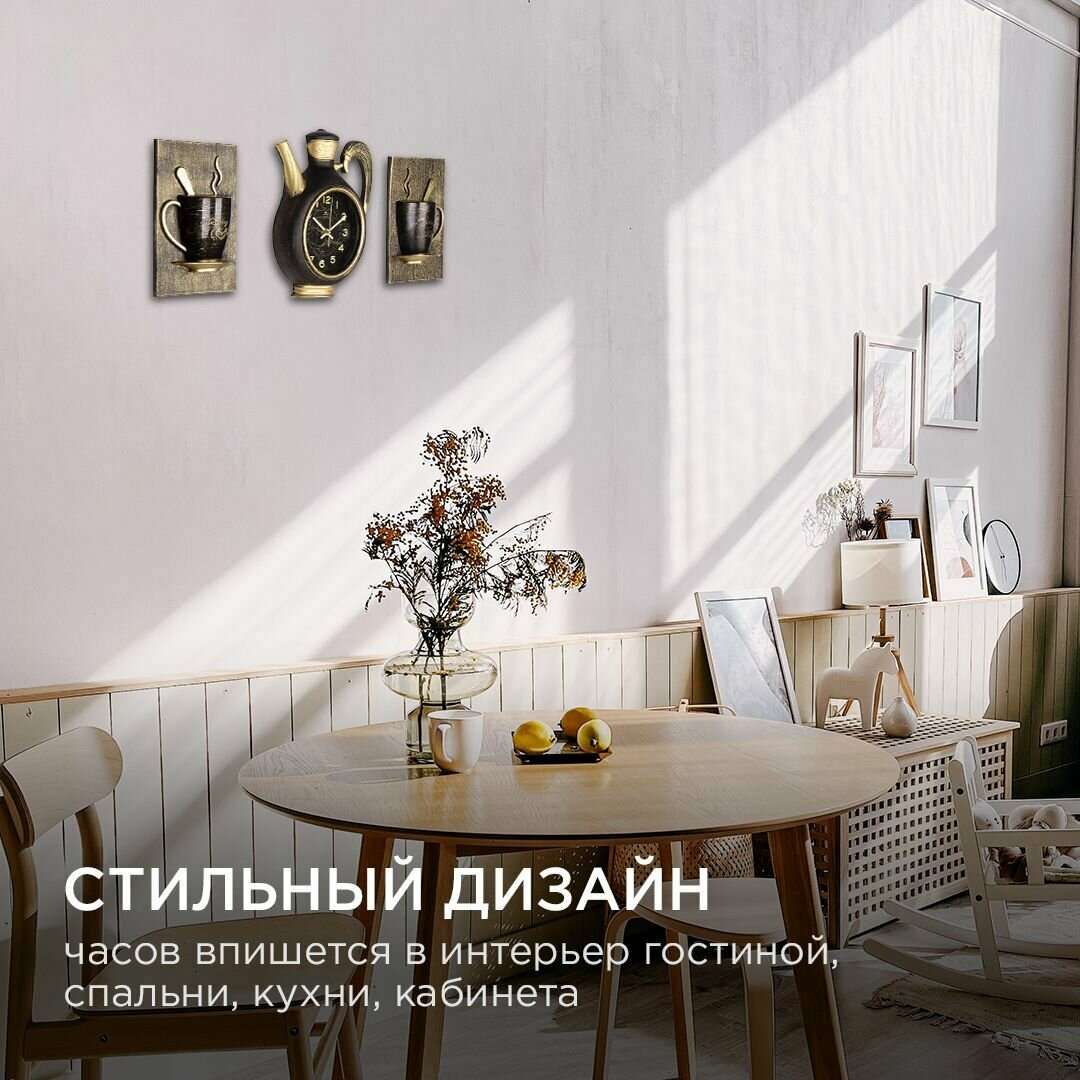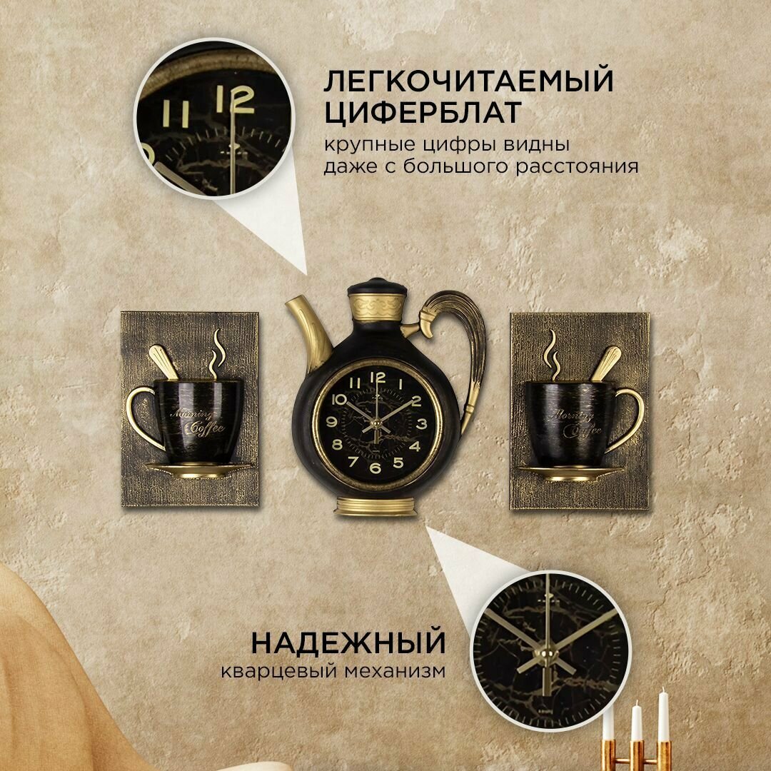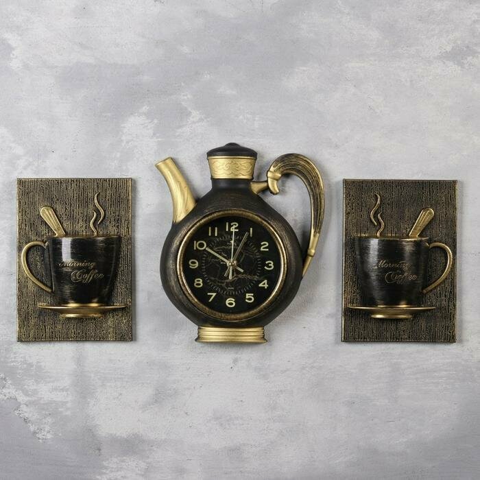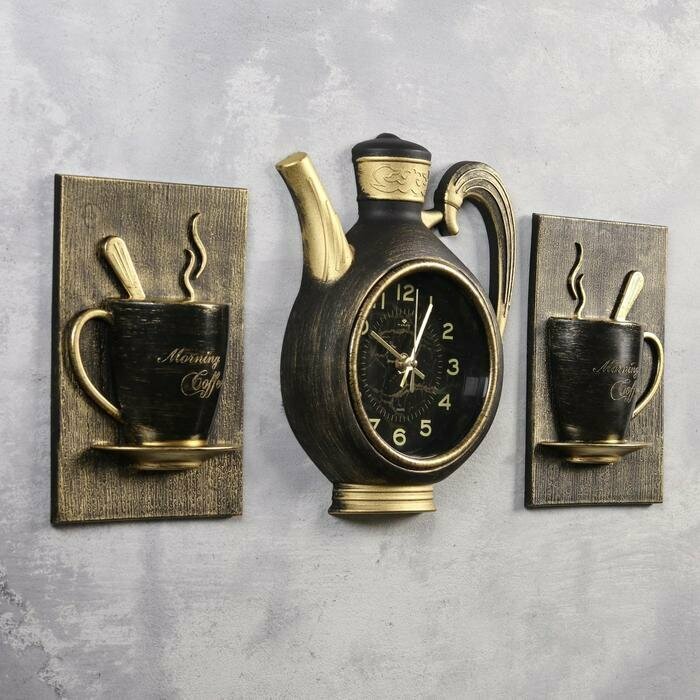 СохранитьЧасы настенные интерьерные для кухни "Сангино", бесшумные, 26.5х24 см, чёрные с золотом, АА интересное: