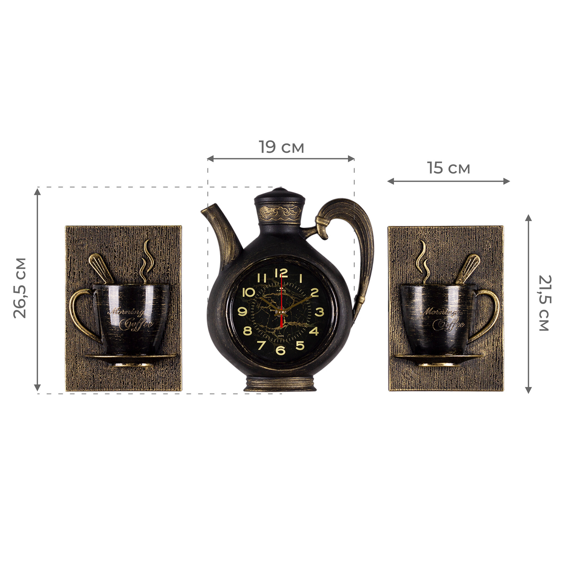 Часы настенные бесшумные Рубин бронзовый цвет, размеры 26 см/31 см, для кухни