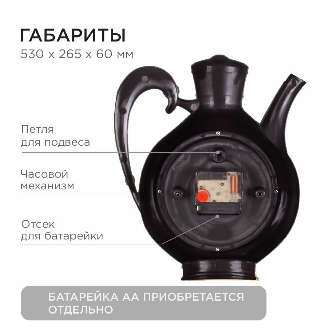 Часы настенные интерьерные для кухни "Чаепитие", бесшумные, чайник 26.5 х 24 см, серые, АА