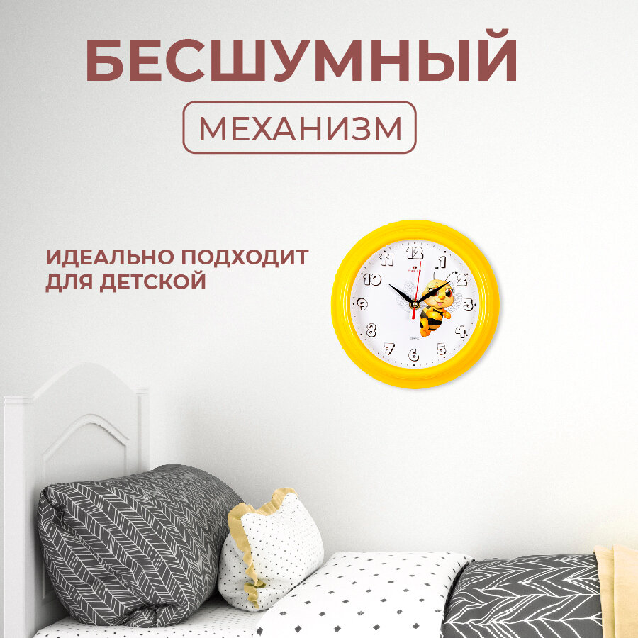 Купить Часы настенные, интерьерные, детские, "Пчелка", d-21 см, бесшумные