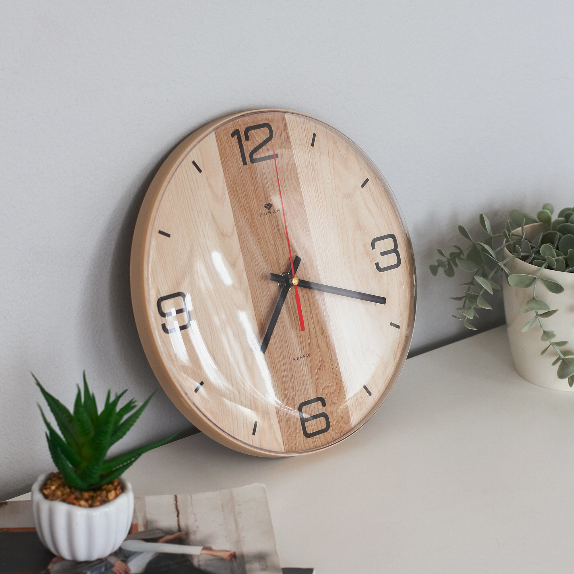 Купить Часы настенные круглые диаметр 25 см под дерево