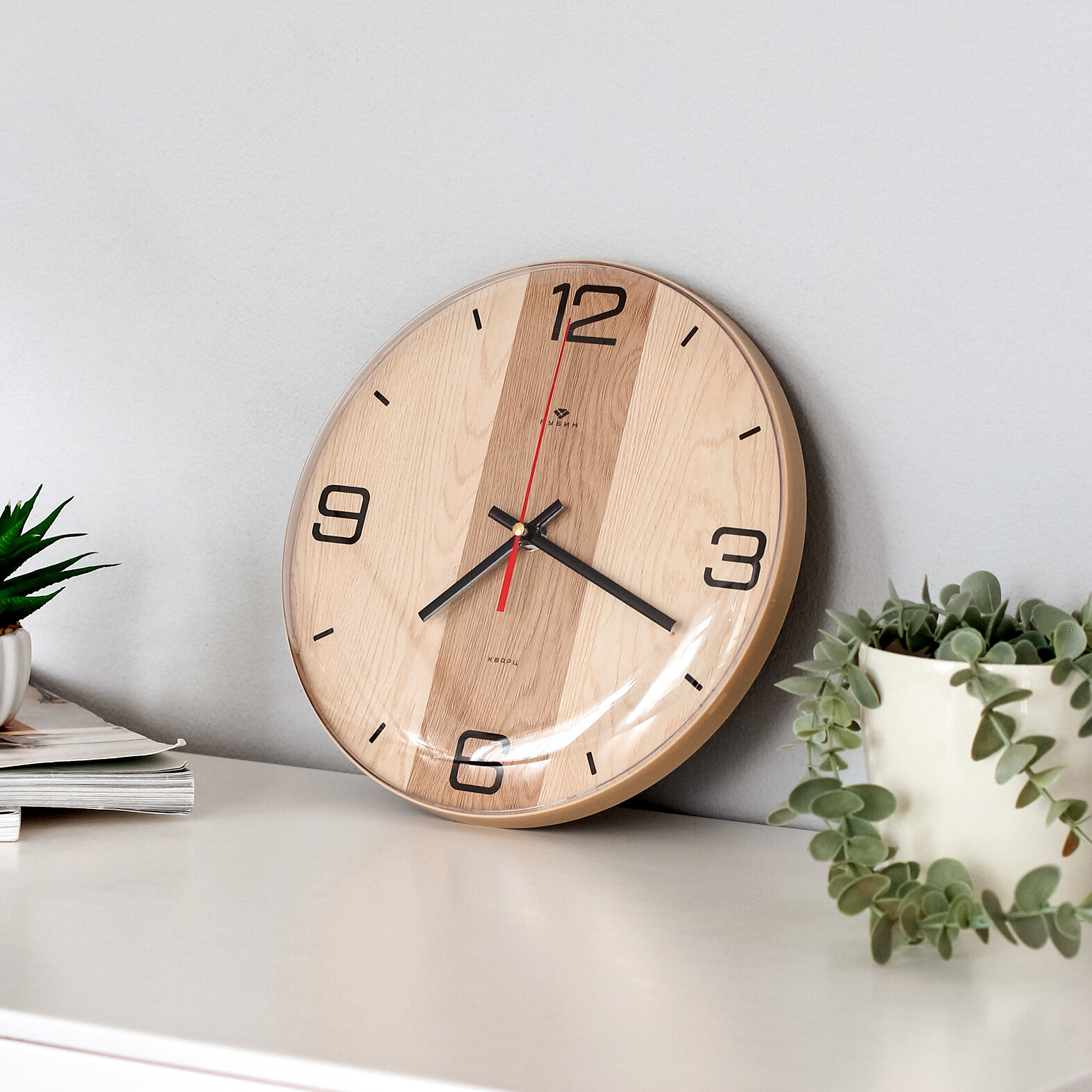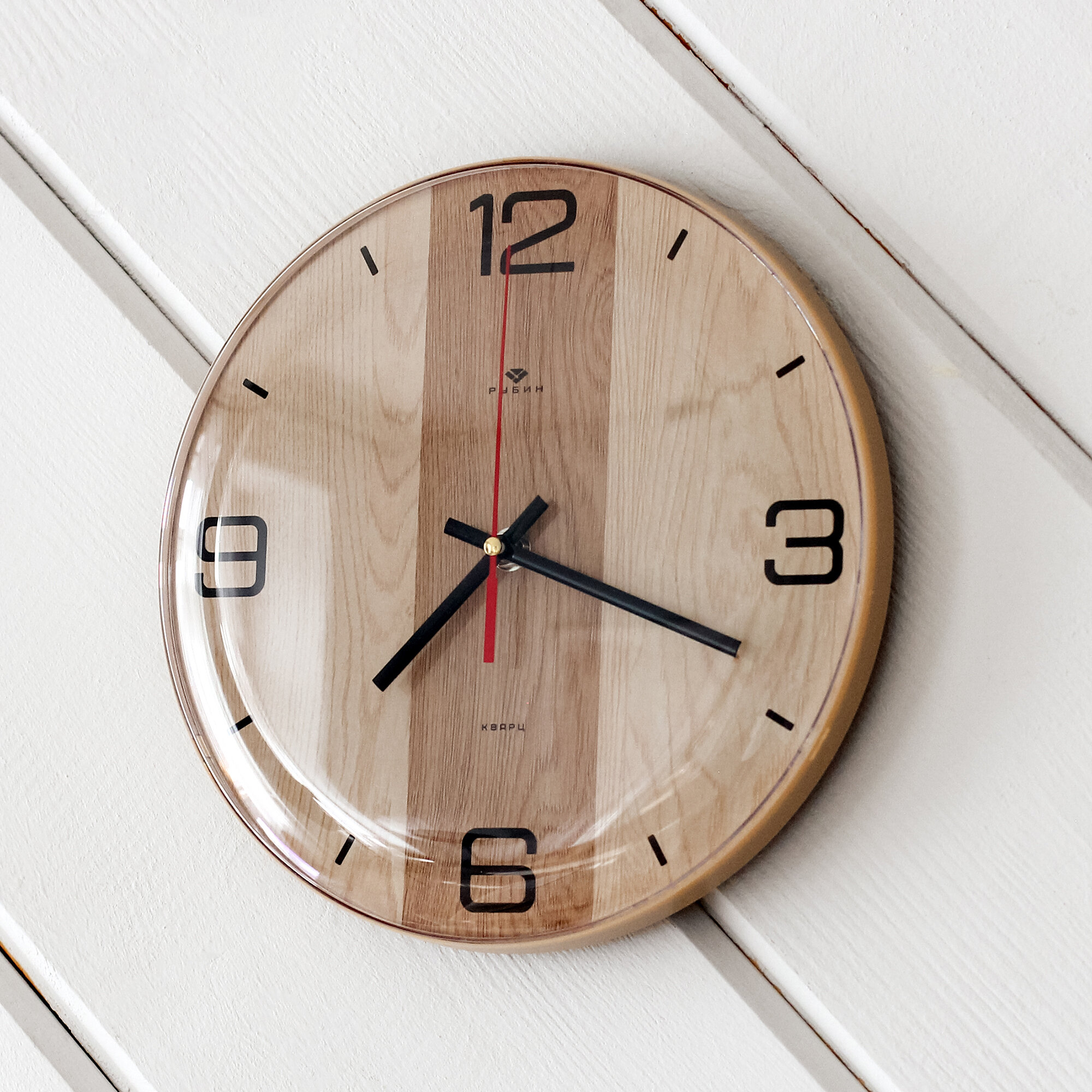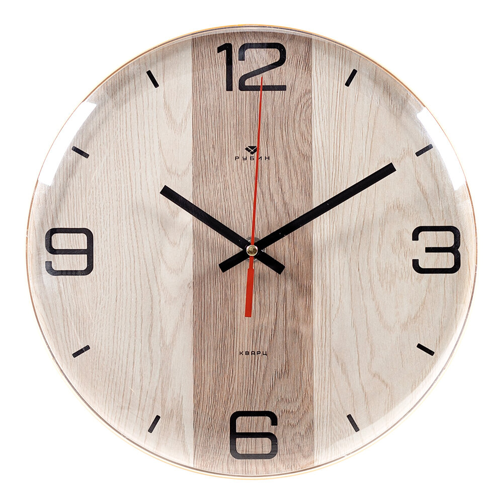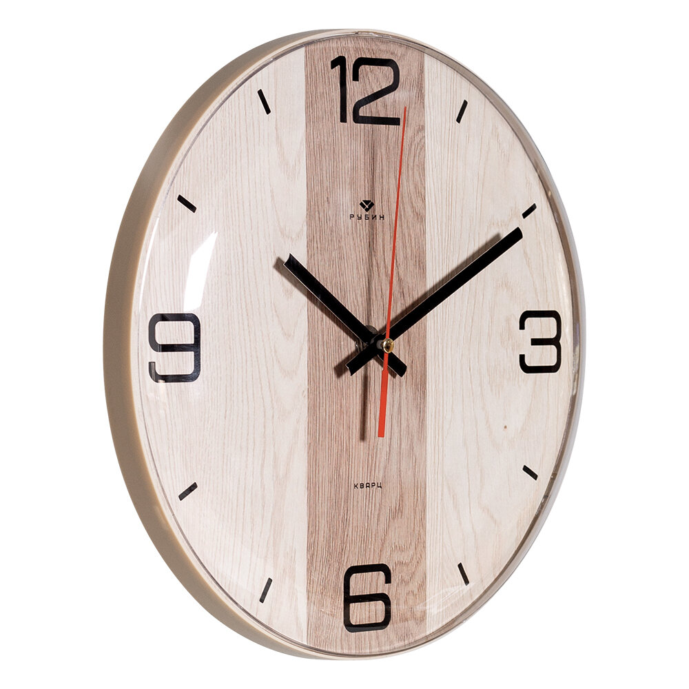 Часы настенные интерьерные "Рубин" круг d=25см, основание бежевое "Текстура дерева", кварцевый механизм
