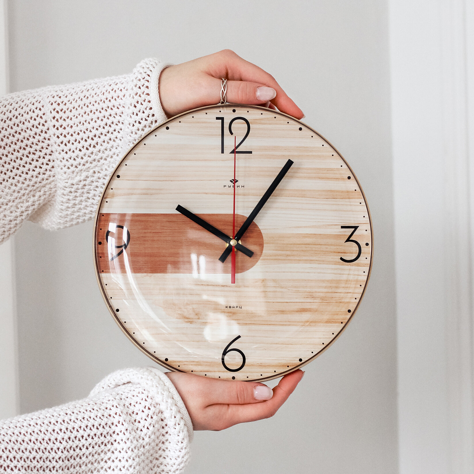 Часы настенные интерьерные "Рубин" круг d=25см, основание бежевое "Текстура дерева", кварцевый механизм