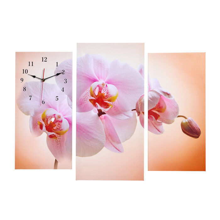 Купить Часы-картина настенные, модульные "Розовая орхидея", бесшумные, 60 х 80 см, триптих