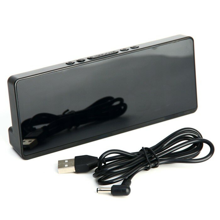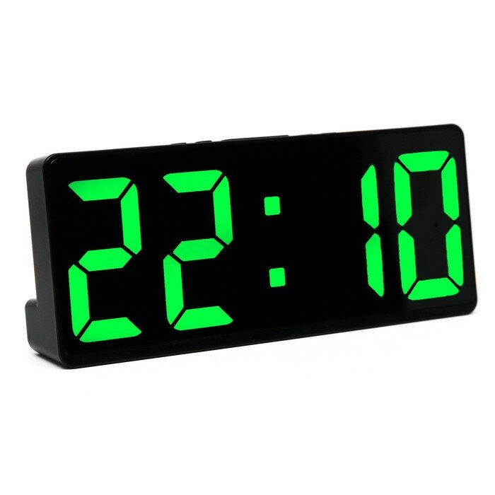 Часы настольные электронные: будильник, термометр, календарь, USB, 15х6.3 см, зеленые цифры интересное: