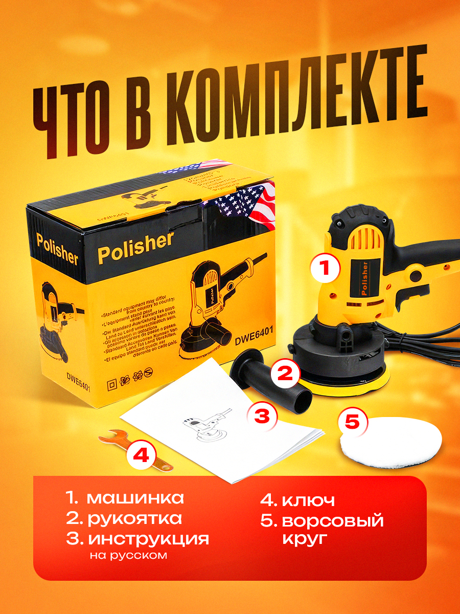 | Комплектация | Полировальная машинка, съёмный полировочный диск, ключ, доп.ручка |