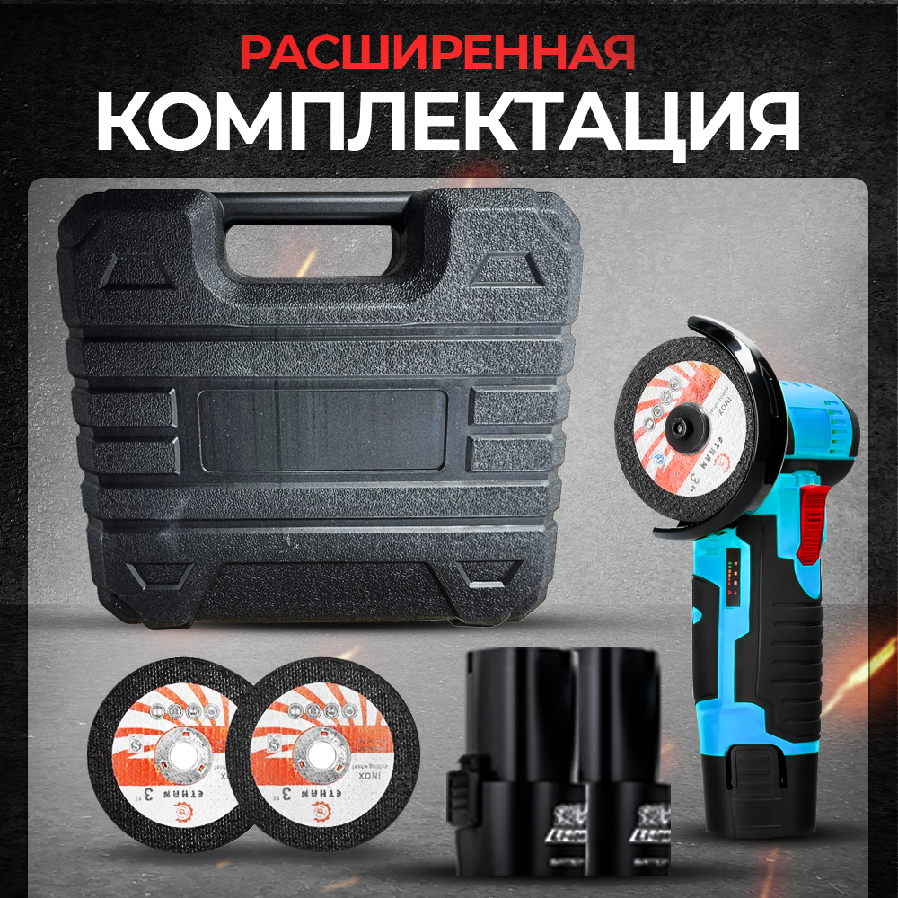 Мини УШМ аккумуляторная, Болгарка 19500об/мин 2 акб интересное: