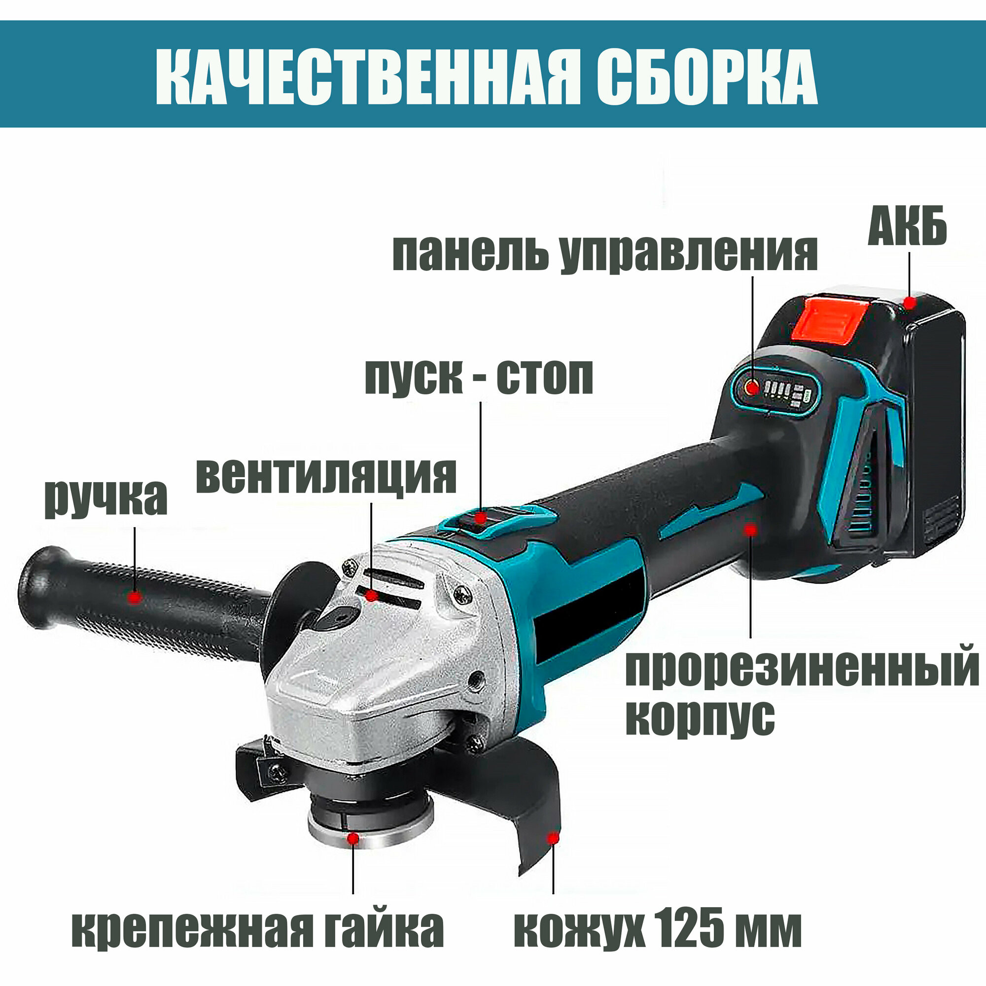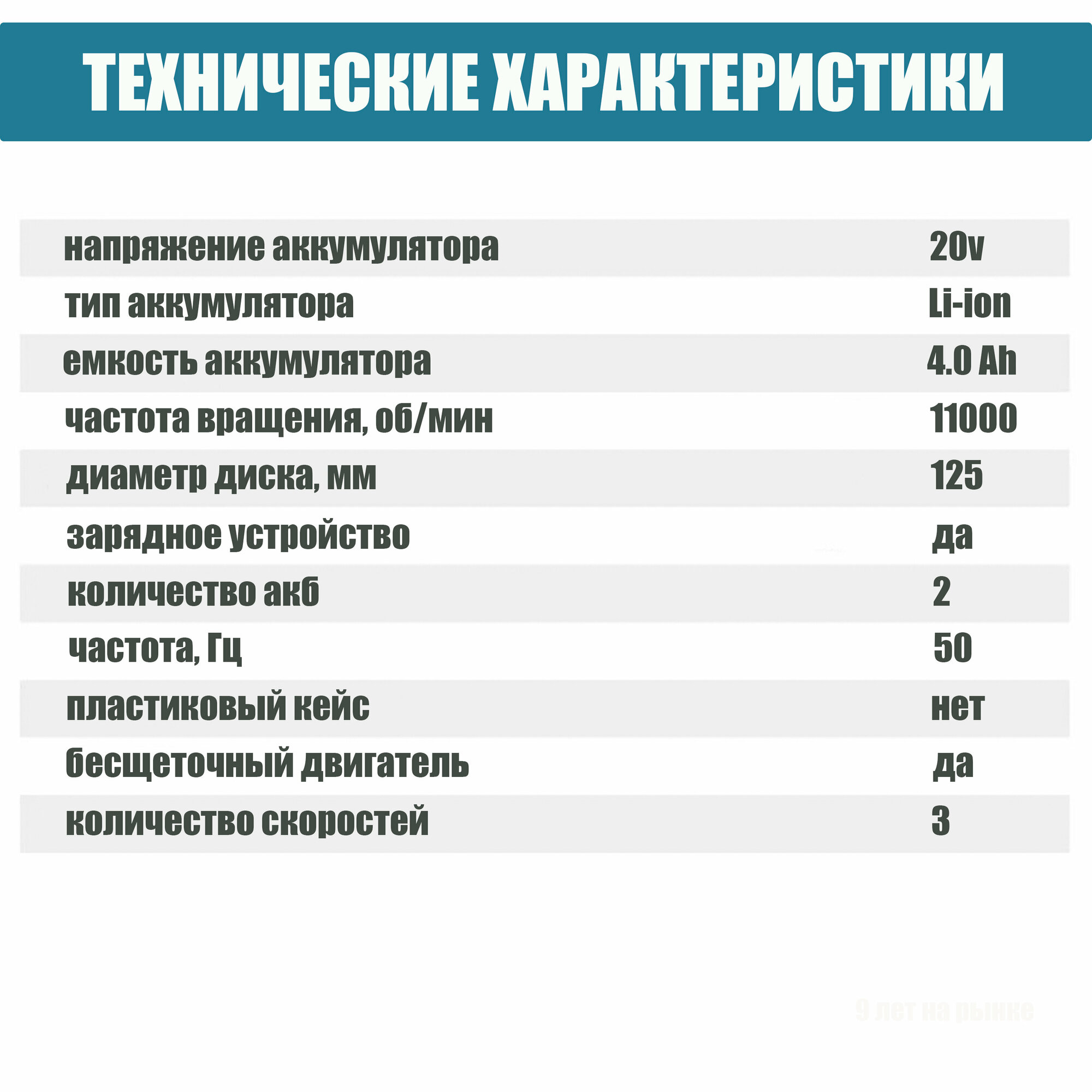 Аккумуляторная бесщеточная УШМ ProTech 11000/125 мм c АКБ-2шт 4.0 Ah 20V SJ MAXLITHIUM Li-ion и зарядкой интересное: