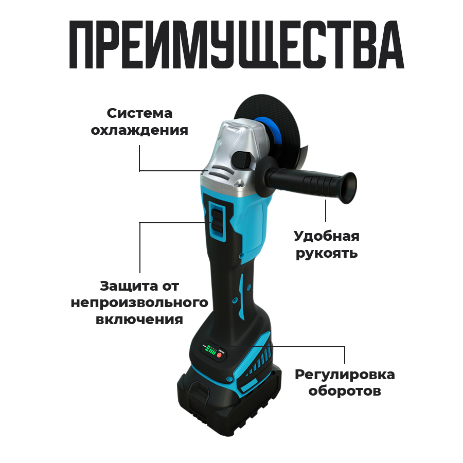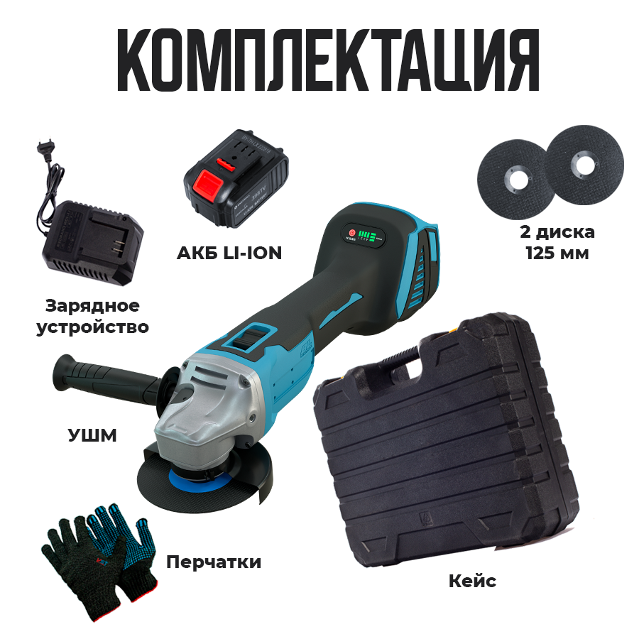 Болгарка аккумуляторная Enstroll УШМ 125, УШМ аккумуляторная, болгарка 125 мм 1 АКБ + 2 диска + перчатки интересное: