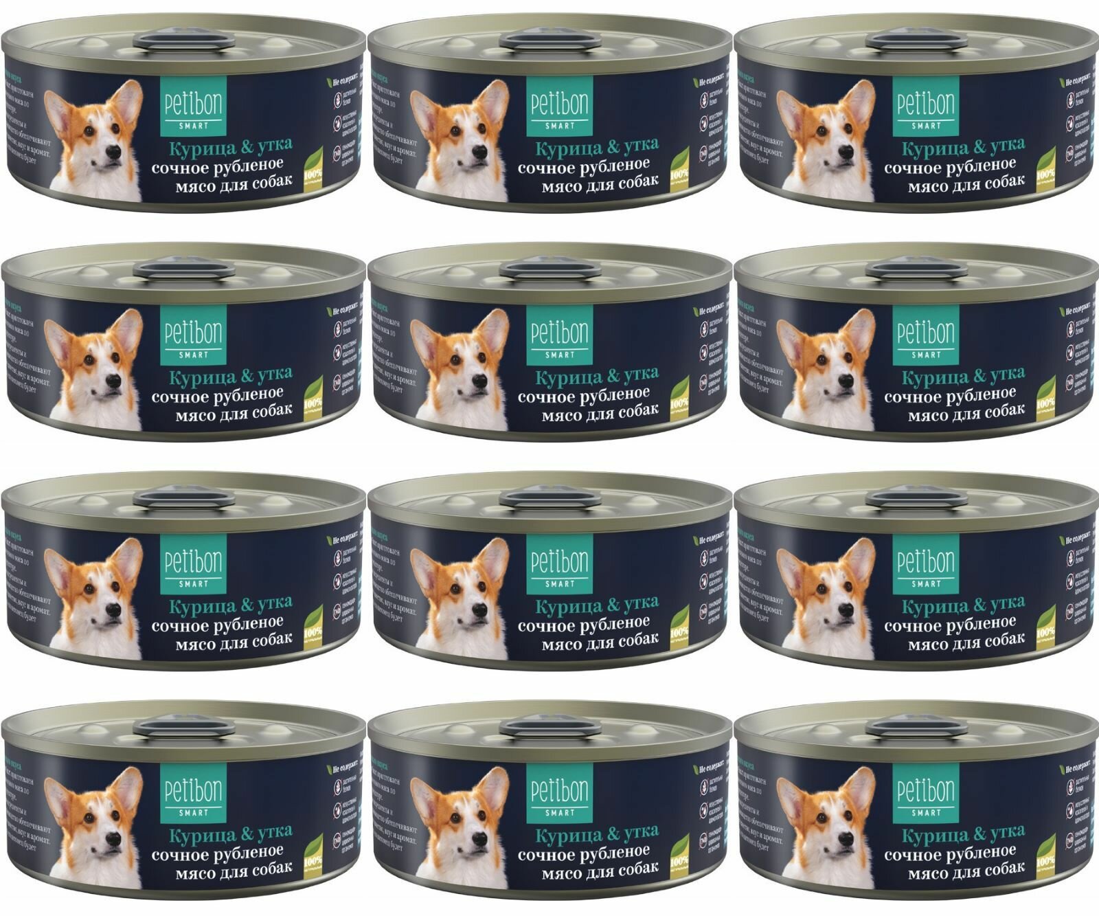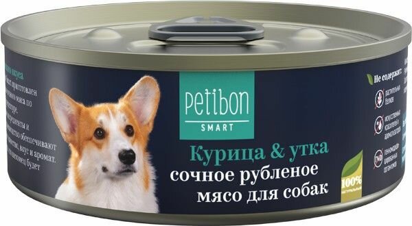 Petibon Smart влажный корм для взрослых собак, рубленое мясо с курицей и уткой, в консервах - 100 г х 24 шт