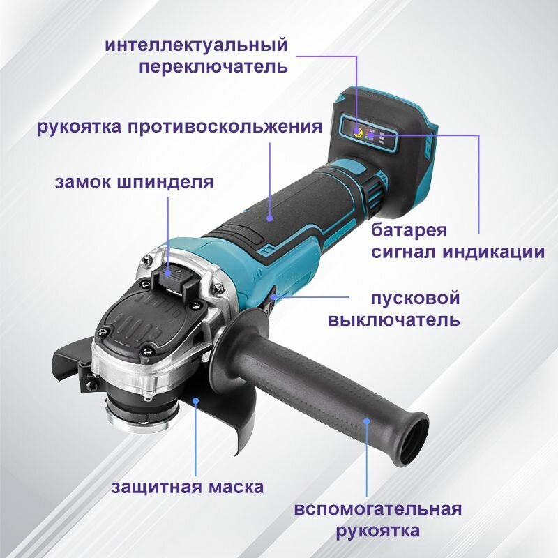 Болгарка аккумуляторная ушм / Угловая шлифовальная машина 125мм,11000rpm, без АКБ и ЗУ
