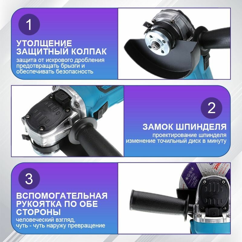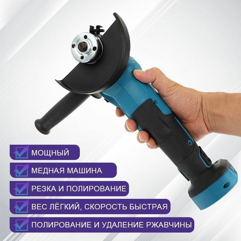 Болгарка аккумуляторная/Угловая шлифовальная машина,Бесщеточный двигатель,125 мм,11000rpm, 2 АКБ и 1 ЗУ