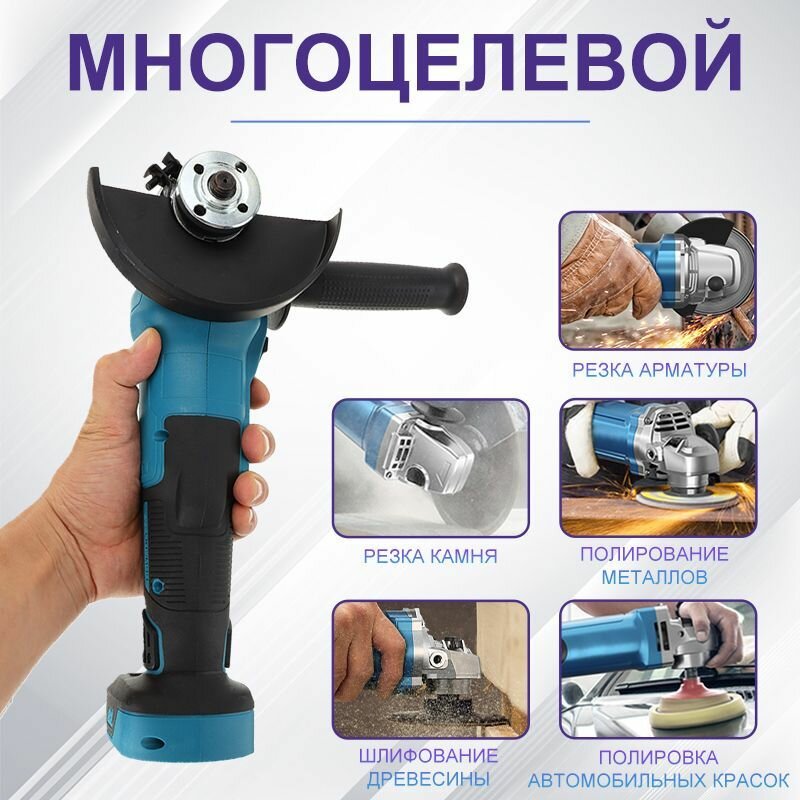 Болгарка аккумуляторная/Угловая шлифовальная машина,Бесщеточный двигатель,125 мм,800 Вт, 2 АКБ и 1 ЗУ