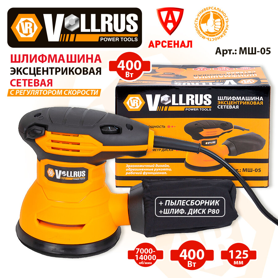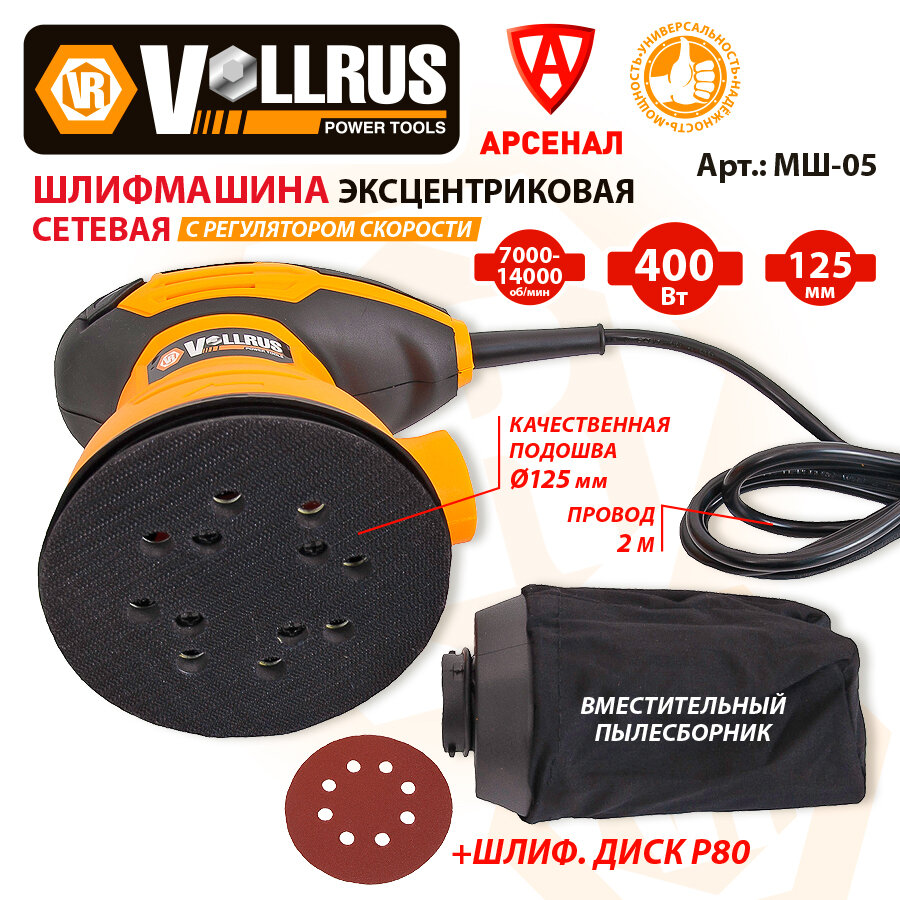 Шлифмашина электрическая эксцентриковая 400Вт; 125мм; Vollrus, МШ-05 интересное: